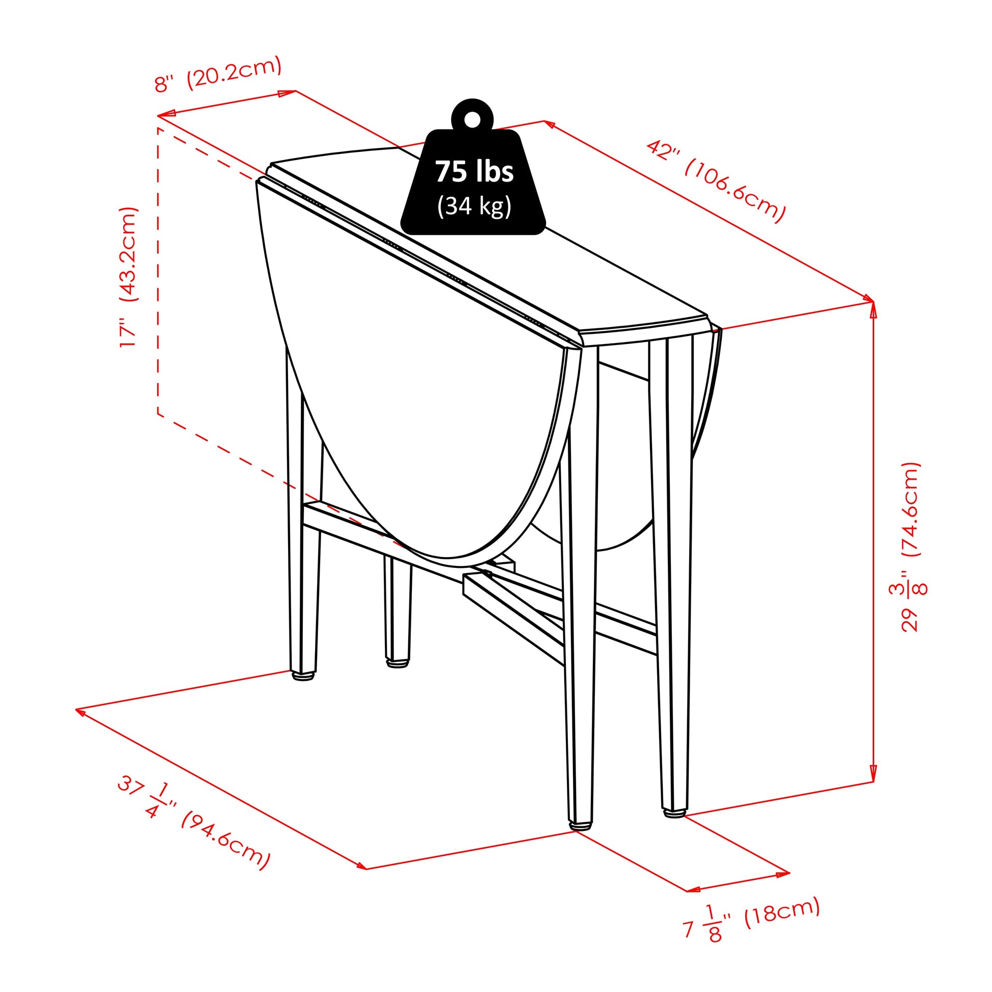 The Winsome Wood Hannah Dining Set is a basic 3 piece drop leaf table with two ladder back chairs which makes this a great addition to any home. Drop-leaf and gateleg tables are ideal for small homes but also perfect for having extra guest over. Keep the leaves down and conserve valuable space as this table fully closed measures; 41.9”W x 9.7”D. Or easily raise one or both leaves up and use for serving at parties. Perfect set for your craft room, sunroom or add two extra chairs (sold separately) to sit additional guest for dinner. The Hannah table and two ladder back chairs included are made with solid wood in light oak finish. This 42” diameter table sits up at 29.5”H which therefore can accommodate most standard chairs. The chairs sit up at 17.97”H and have a weight capacity of 220lbs. This 3-piece set is shipped in two boxes and includes the hardware necessary for assembling. Replacement part request can be submitted directly to the manufacturer within 60 days from date of purchase.Dimensions : 41.97 in. Wide 41.97 in. Deep 29.37 in. High