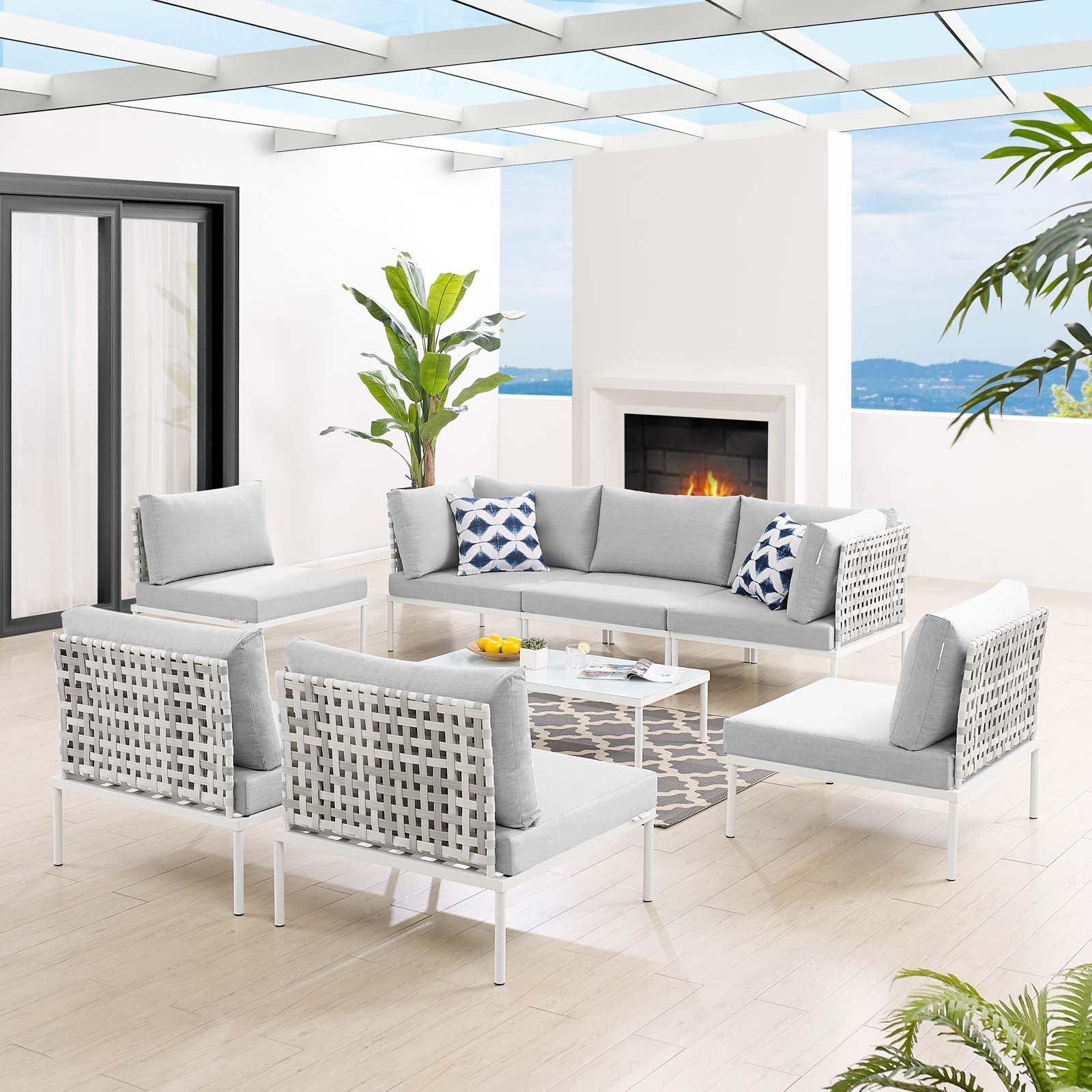 Harmony 8-Piece Sunbrella® Basket Weave Outdoor Patio Aluminum Sectional Sofa Set Taupe Gray EEI-4938-TAU-GRY-SET