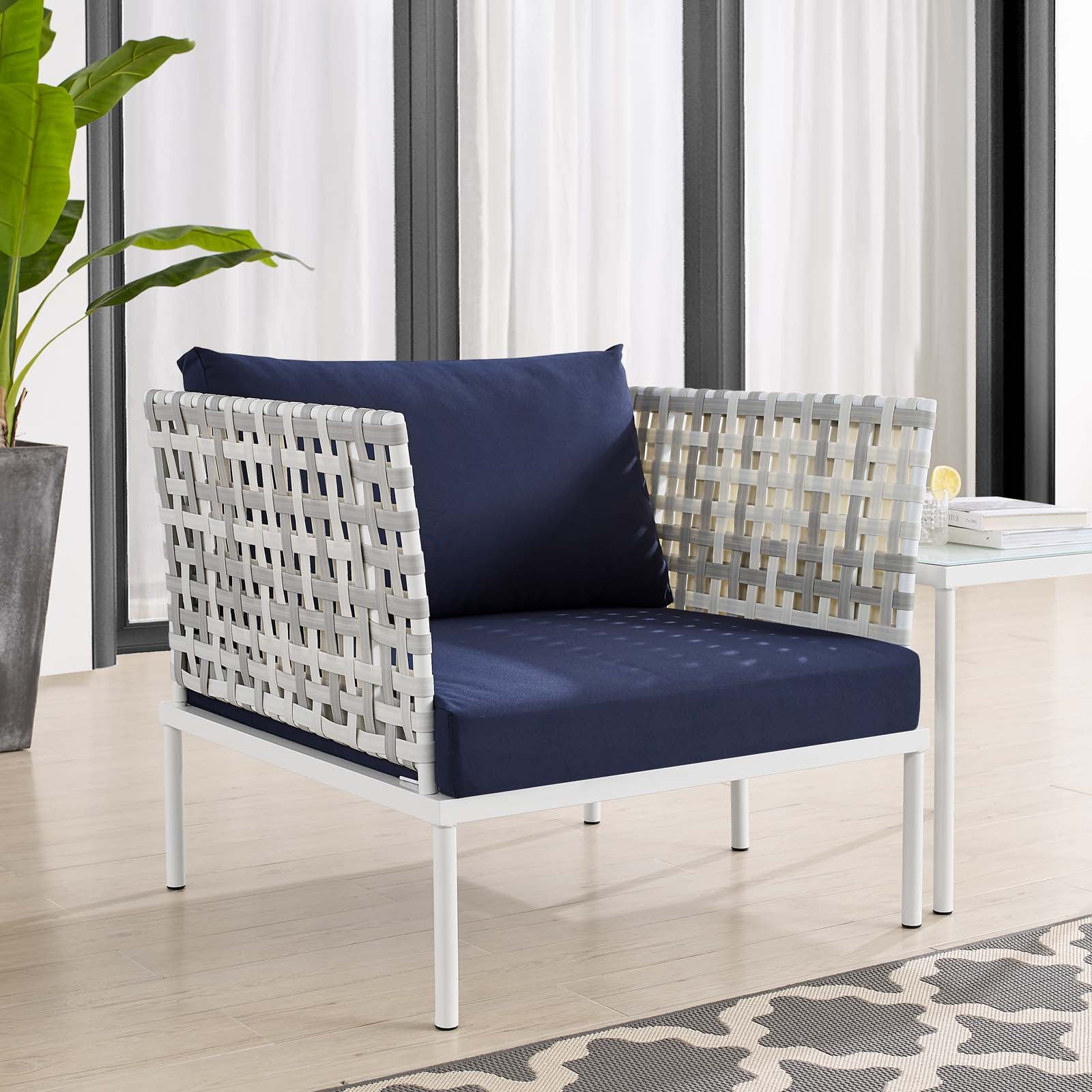 Harmony Sunbrella® Basket Weave Outdoor Patio Aluminum Armchair Taupe Navy EEI-4541-TAU-NAV