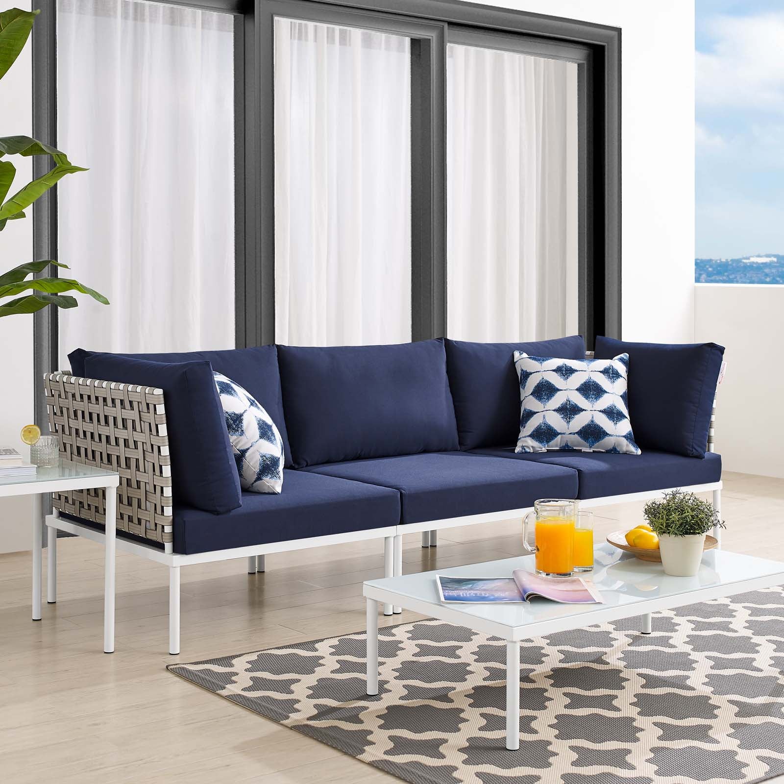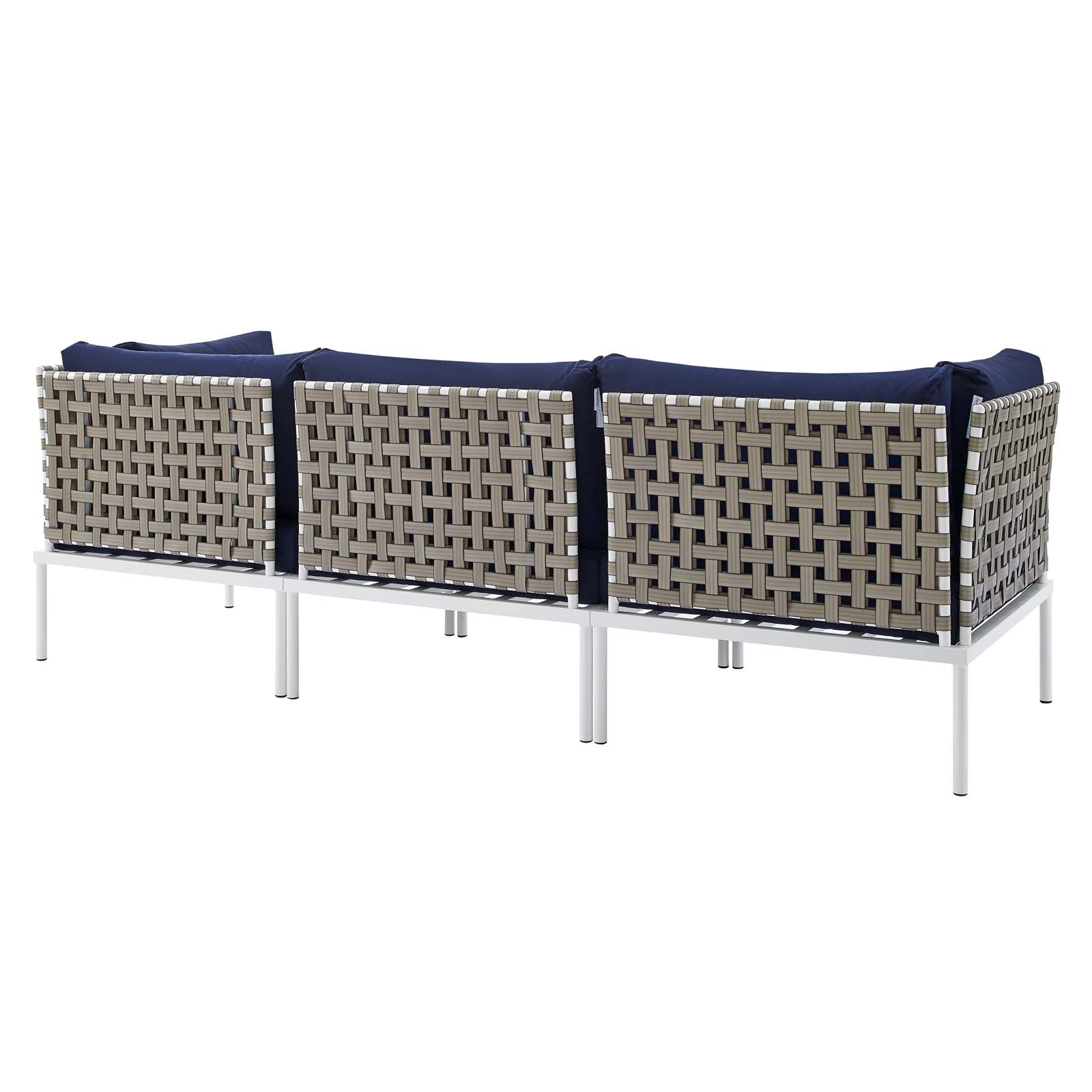 Harmony Sunbrella® Basket Weave Outdoor Patio Aluminum Sofa Tan Navy EEI-4966-TAN-NAV