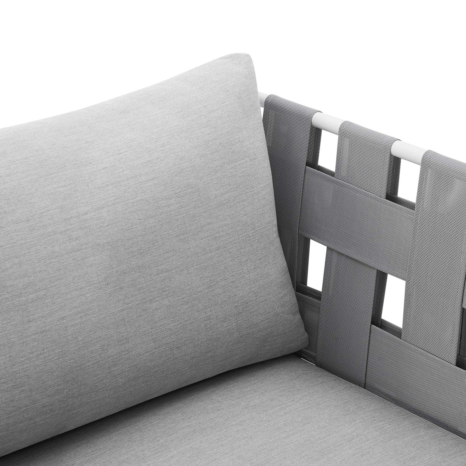 Engage life with Harmony Outdoor Patio Armchair. Enjoy casual conversation under the open sky with an all-weather waterproof outdoor chair from a versatile furniture set that delivers an exceptional outdoor porch, patio, balcony or garden experience. An exceptional modern outdoor furniture set that exceeds expectations, Harmony Patio Armchair comes with silk polyester seat back weave, square powder coated aluminum bases, Sunbrella® cushions, and non-marking foot caps. An outside sofa that arranges according to the spontaneous needs of your guests, set your sights on open and inspired moments with the Harmony Outdoor Patio Collection.