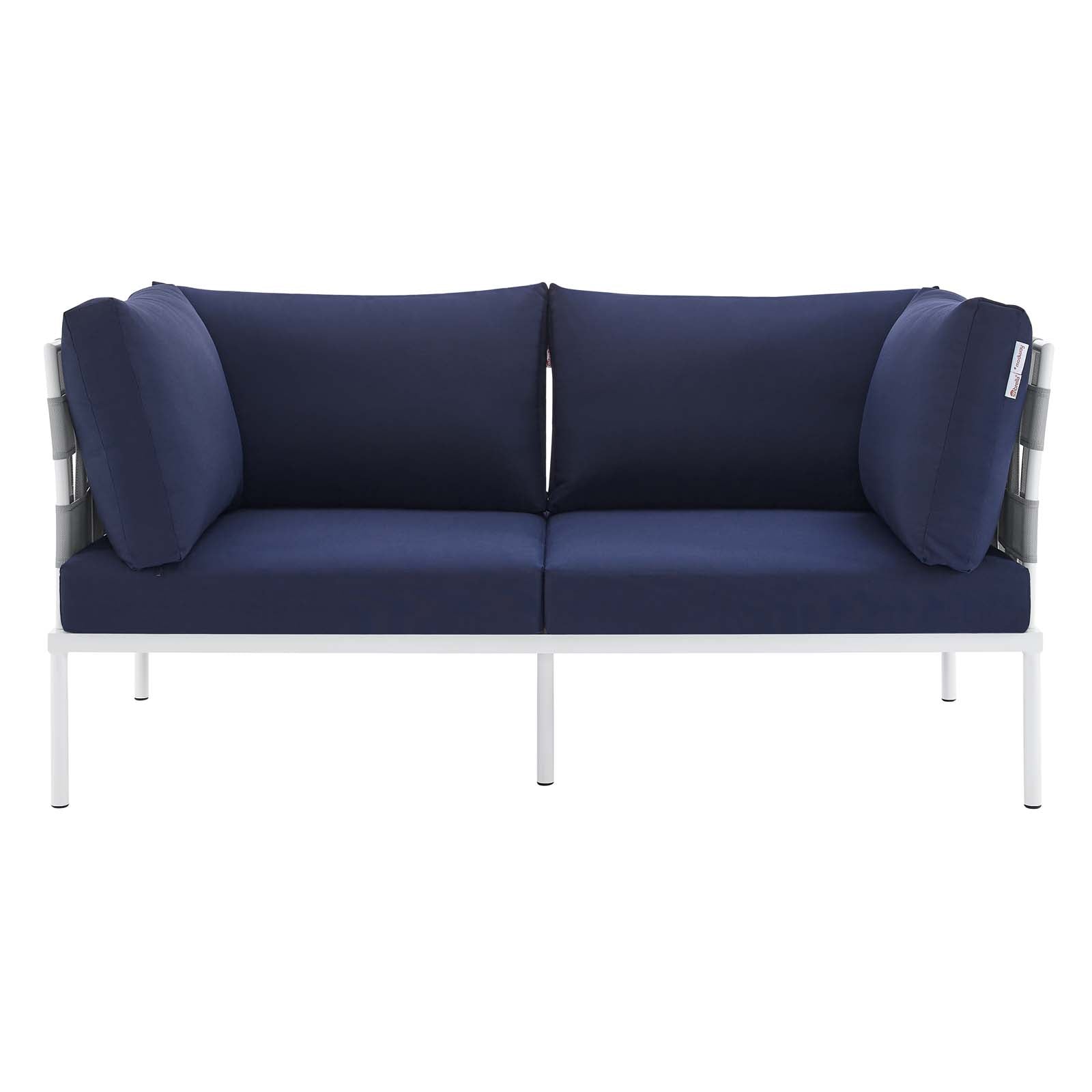 Harmony Sunbrella® Outdoor Patio Aluminum Loveseat Gray Navy EEI-4964-GRY-NAV