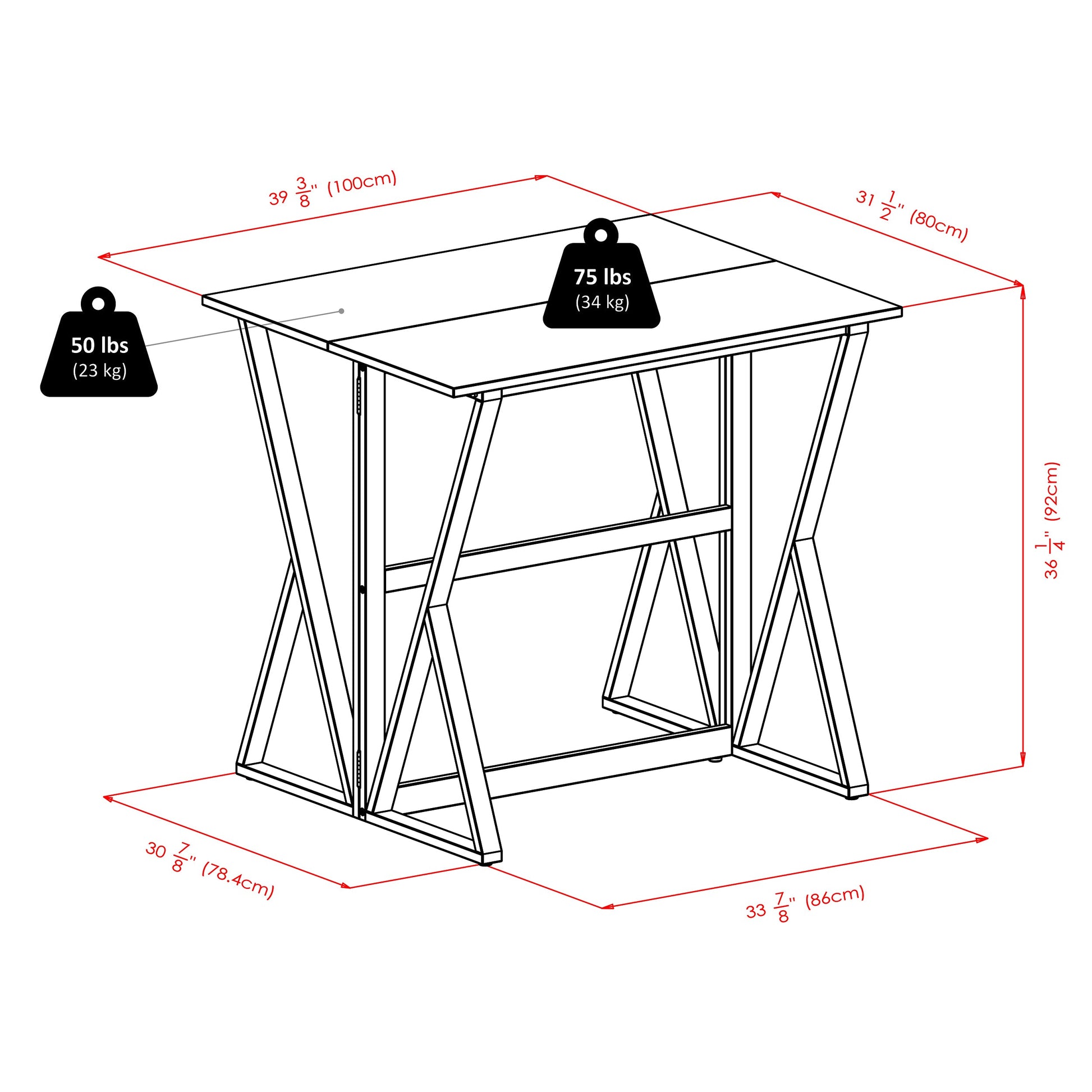 Harrington Drop Leaf High Table is a perfect table for your gathering and dinner. Table features a drop leaf extension with a surface area of 39.37"W x 15.75"D. Table dimension when the drop leaf is down is 39.37"W x 16.59"D x 36.22"H. Fully extended table size is 39.37"W x 31.50"D x 36.22"H. Constructed from solid wood in warm Walnut Finish. Assembly Required.Dimensions : 39.37 in. Wide 31.5 in. Deep 36.22 in. High