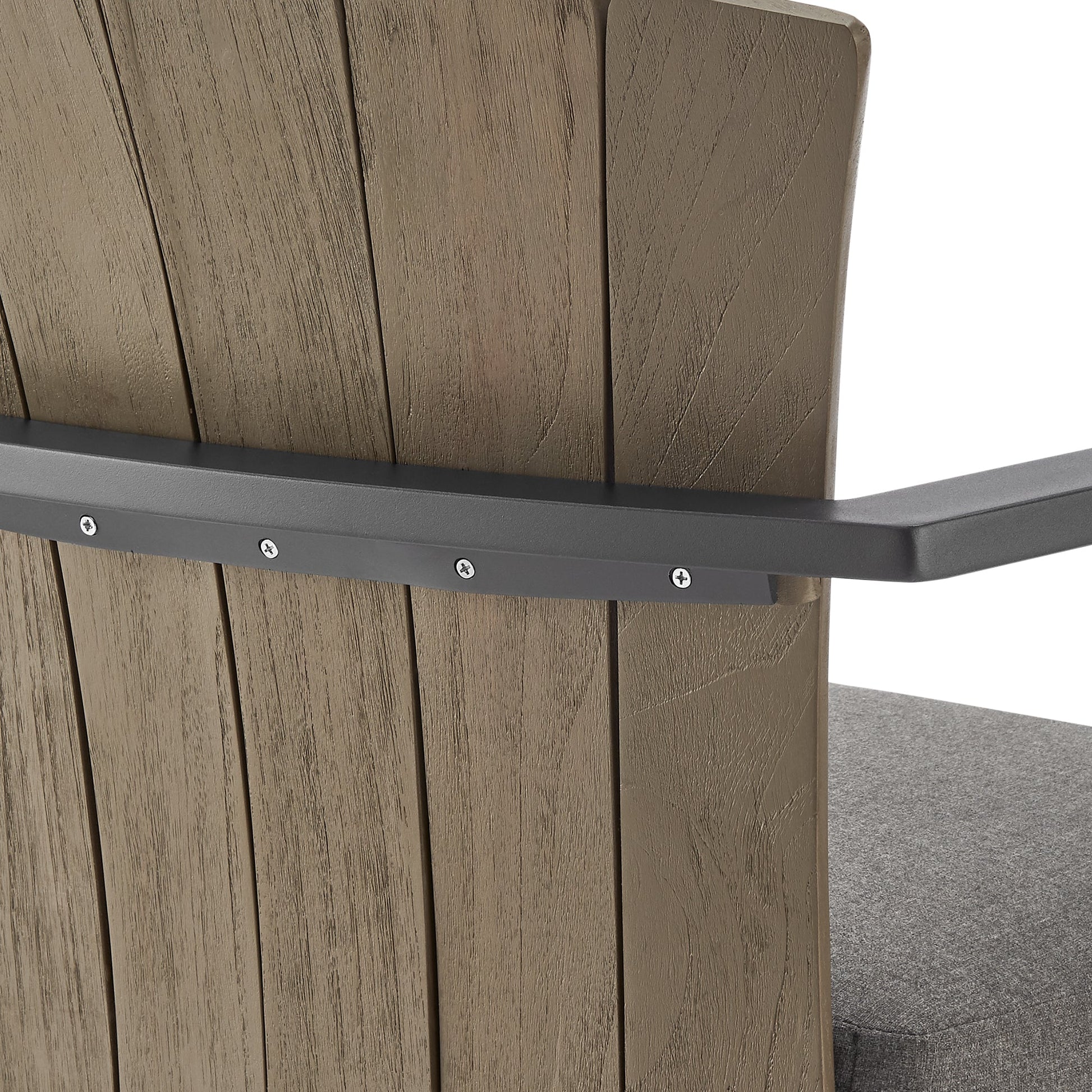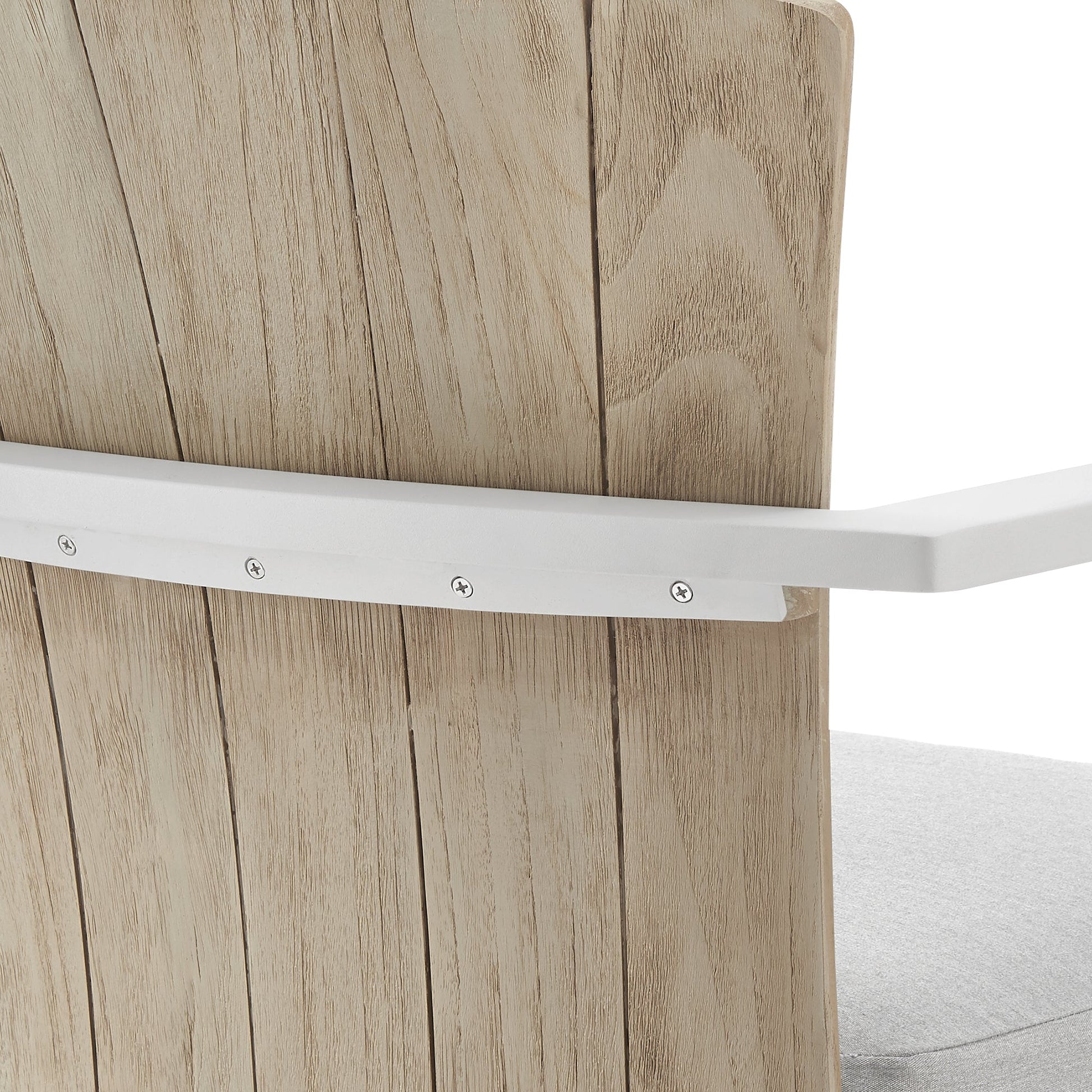 The teak wood accents introduce a touch of natural warmth and sophistication to the design, creating a harmonious contrast with the sleek aluminum frame. Paired with hook and loop removable cushions, this swivel stool invites you to relax in both style and comfort, providing an inviting seating option for outdoor gatherings.