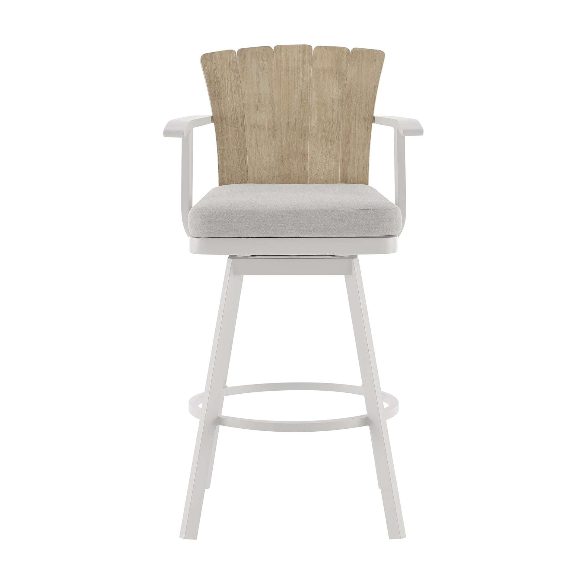 Hazel Outdoor Patio Swivel Stool in Aluminum with Teak Wood and Cushions