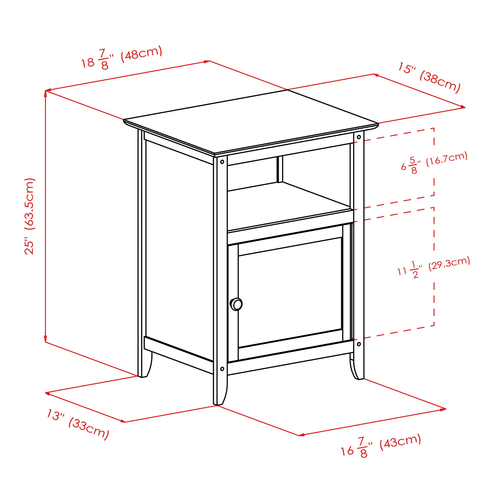 The Henry Accent Table by Winsome will give your bedroom or living room a cozy farmhouse feel with its handcrafted look. Finished in Natural to bring out the warmth of the wood grain, this end table also provides plenty of storage options. The roomy cabinet with door is ideal for keeping nighttime essentials out of sight, while the open shelf offers a handy spot for personal electronic devices and your current novel or magazine. Place a reading lamp and a favorite photo on the tabletop to make the room your special place. Made of Solid and composite wood, a brushed metal cabinet knob and wood nailhead accents create the finishing touches to this warm, simple piece. Conveniently packed and shipped in 1 box, that includes the hardware needed for assembly.
