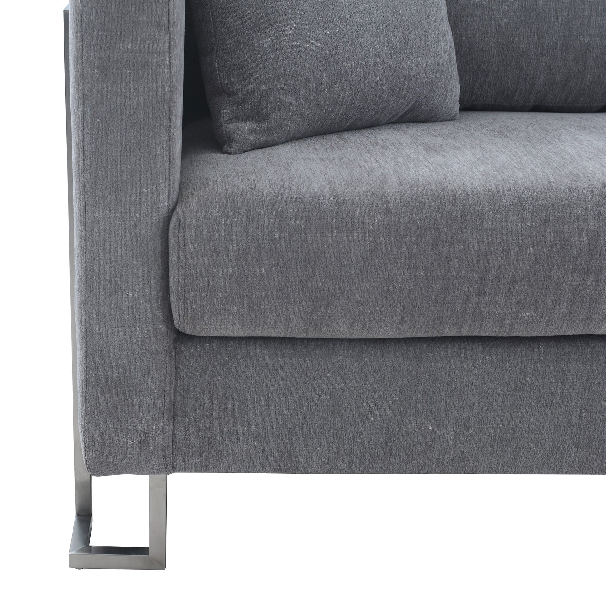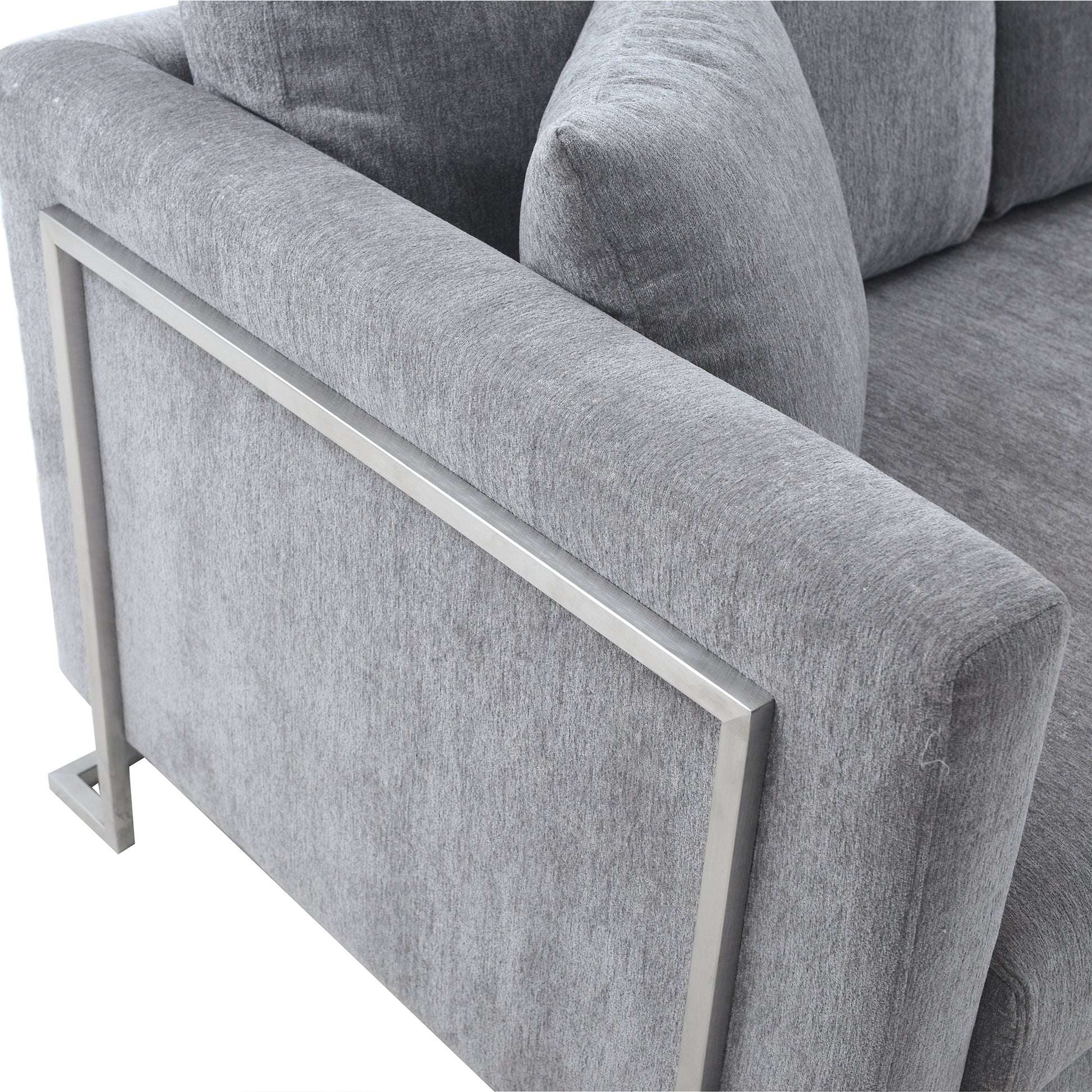 Heritage Gray Fabric Upholstered Sofa with Brushed Stainless Steel Legs