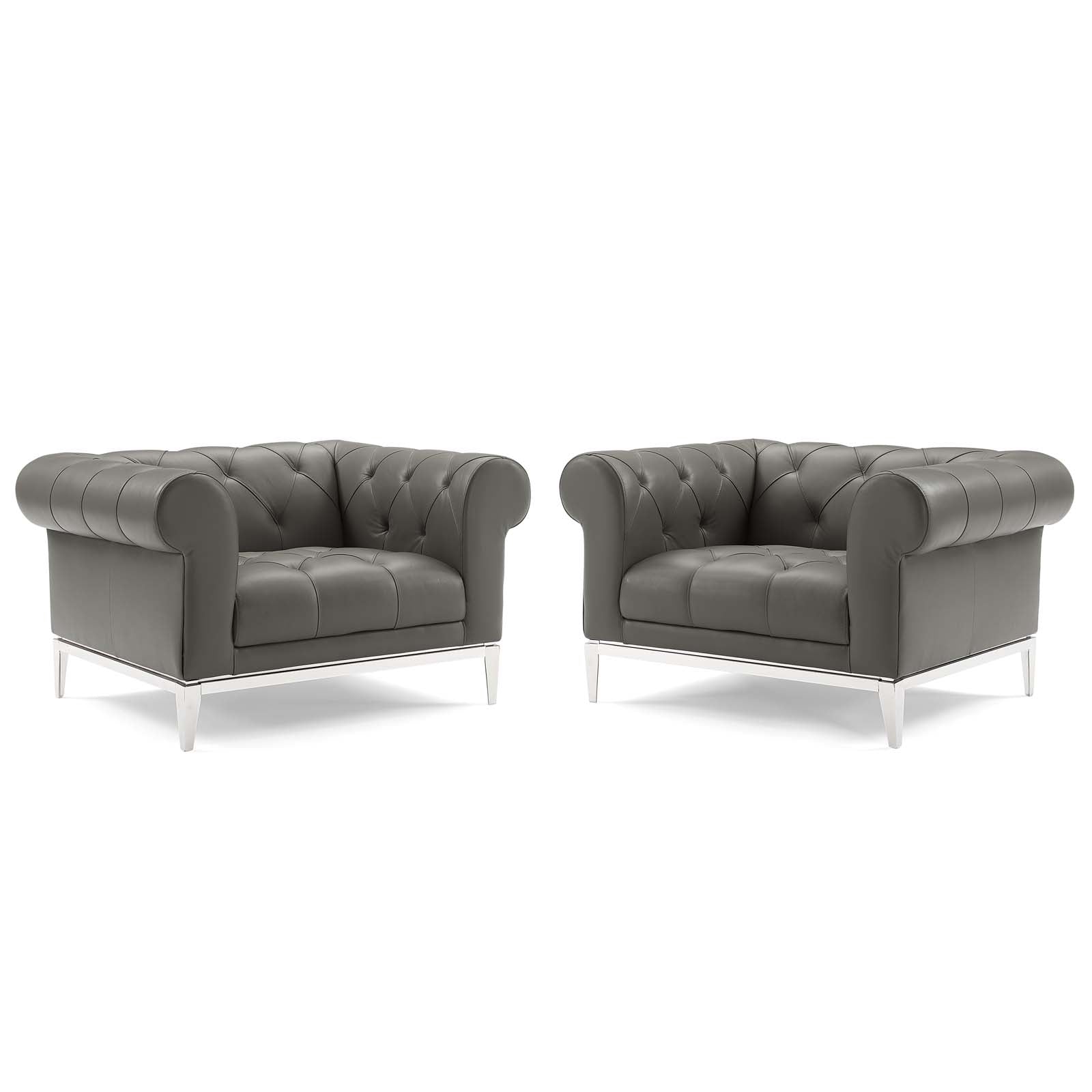 Idyll Tufted Upholstered Leather Armchair Set of 2 Gray EEI-4195-GRY