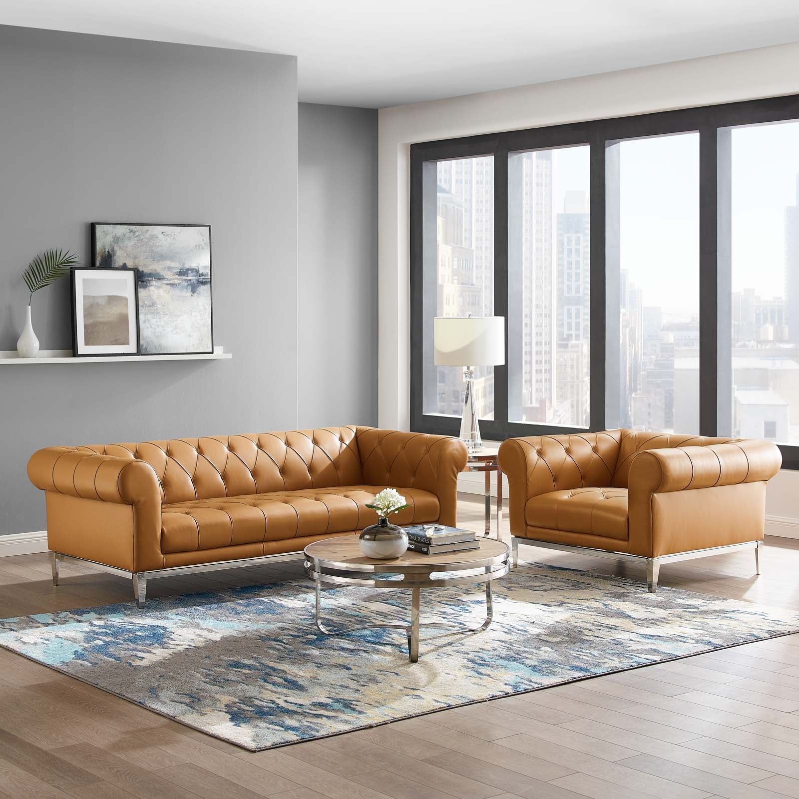 Idyll Tufted Upholstered Leather Sofa and Armchair Set Tan EEI-4191-TAN-SET