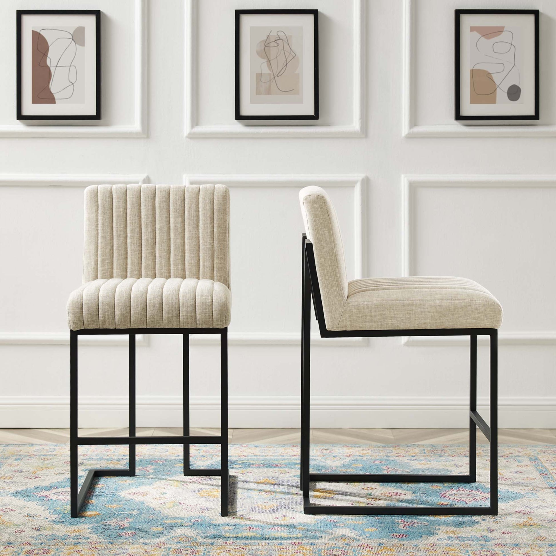Indulge Channel Tufted Fabric Counter Stools Set of 2 by Modway EEI-5741-BEI