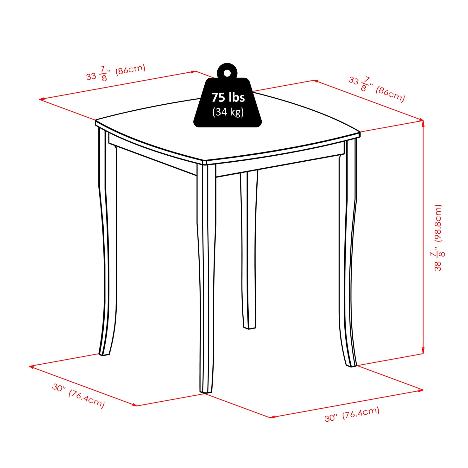 3pc Set comes with Inglewood High Table features Curved Table Top with flare legs. Constructed from Solid wood in Antique Walnut Finish. Saddle Seat Stool completes the set. Perfect for any kitchen.Dimensions : 33.86 in. Wide 33.86 in. Deep 38.9 in. High