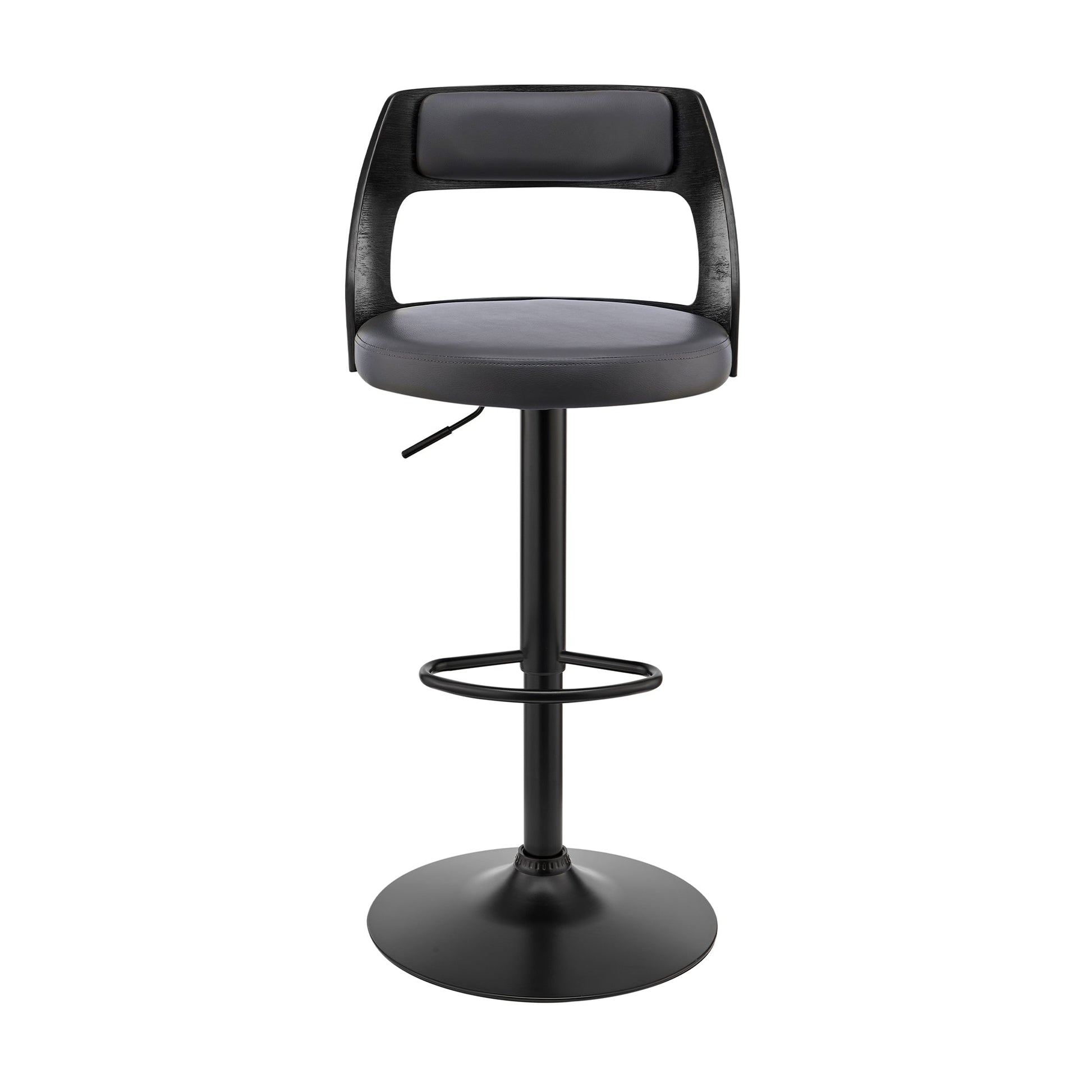 Itzan Adjustable Swivel Faux Leather Bar Stool with Wood and Chrome Base