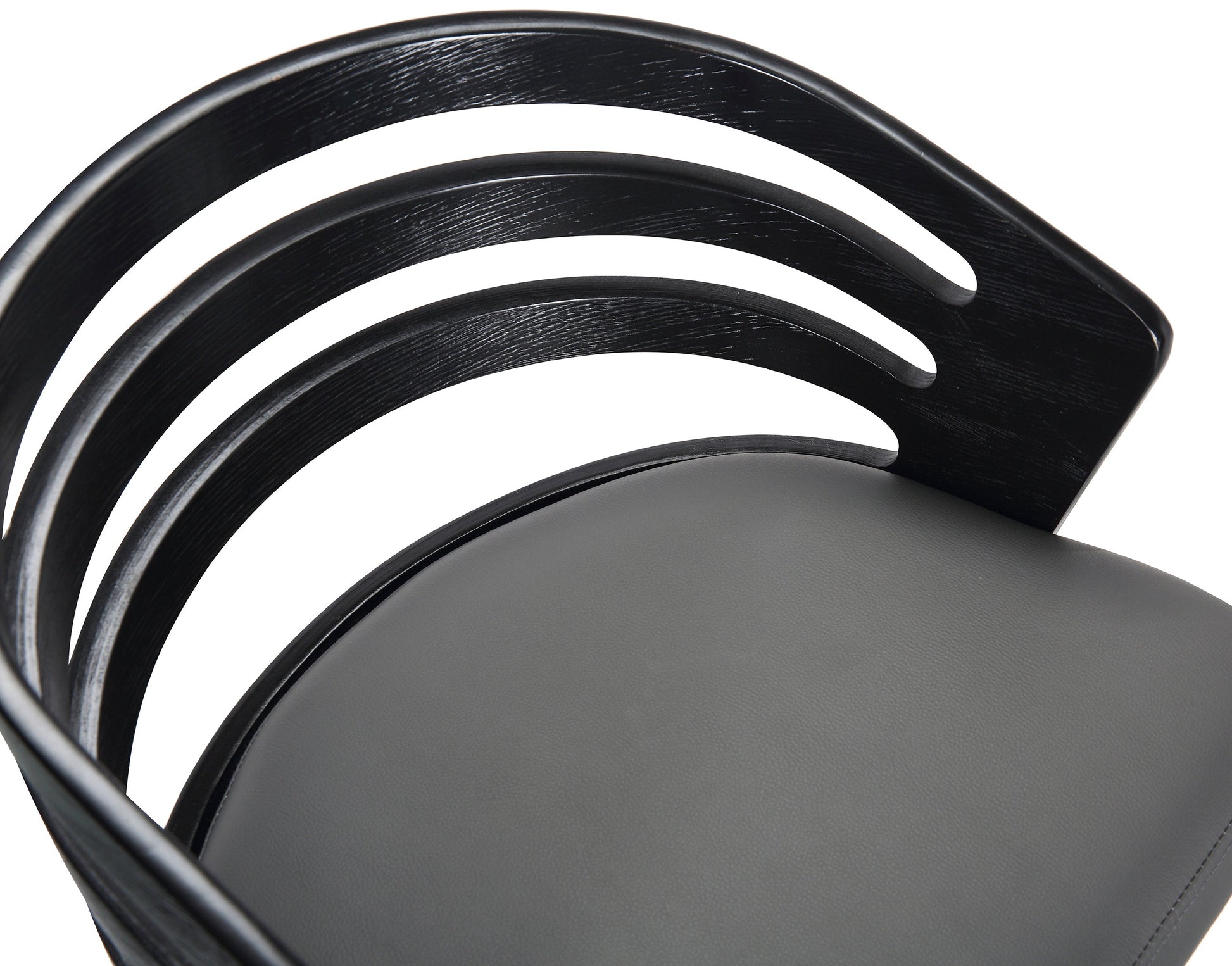 Elevate your home décor with a stunning bar stool that seamlessly blends mid-century modern appeal with contemporary comfort. This stylish swivel bar stool features a rounded seat back designed with ergonomic properties, ensuring your back remains healthy and properly aligned while adding an elegant design element to your space. The plush seat cushion is crafted from high-density foam and wrapped in luxurious faux leather upholstery, offering both durability and easy maintenance.