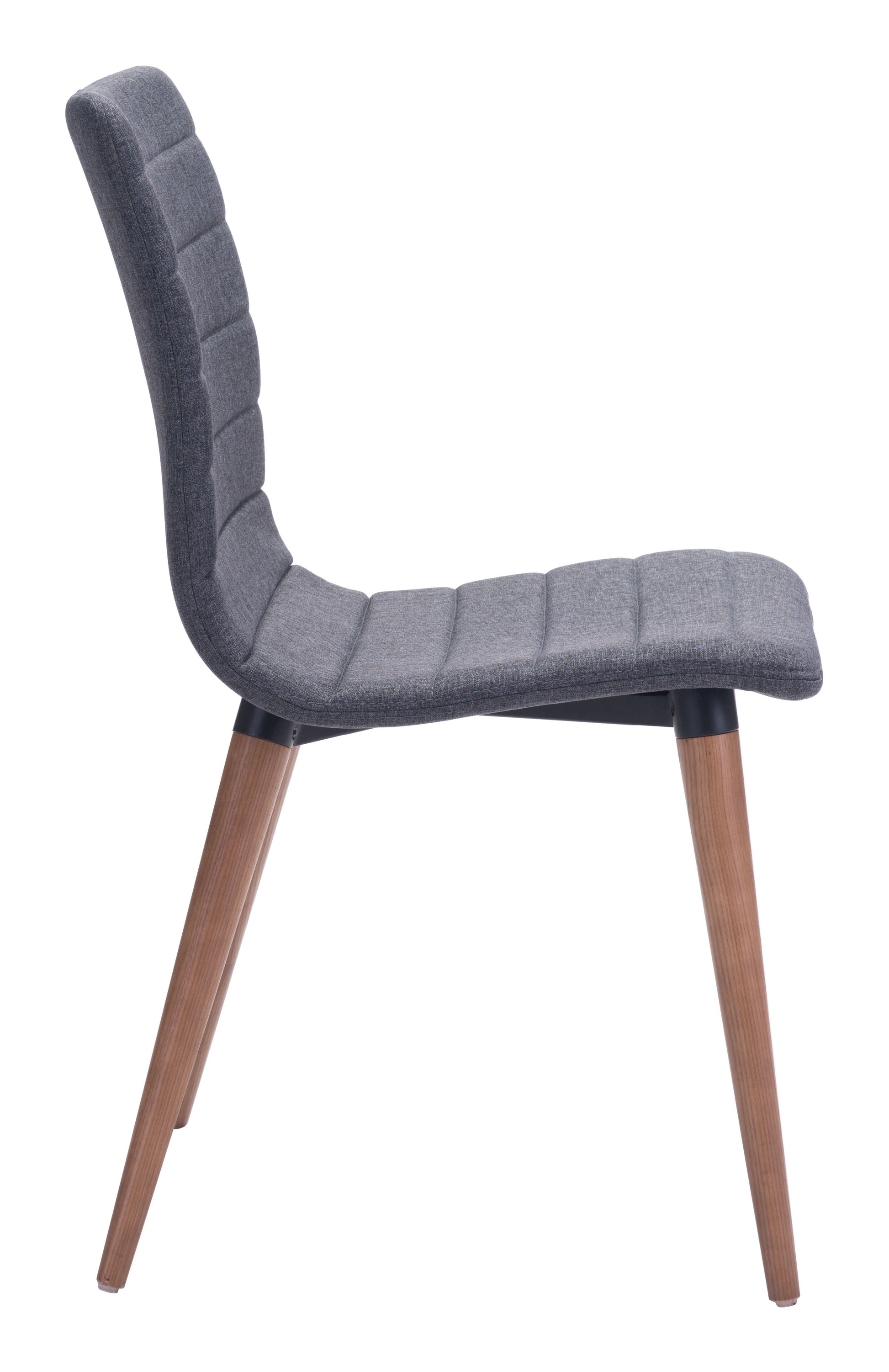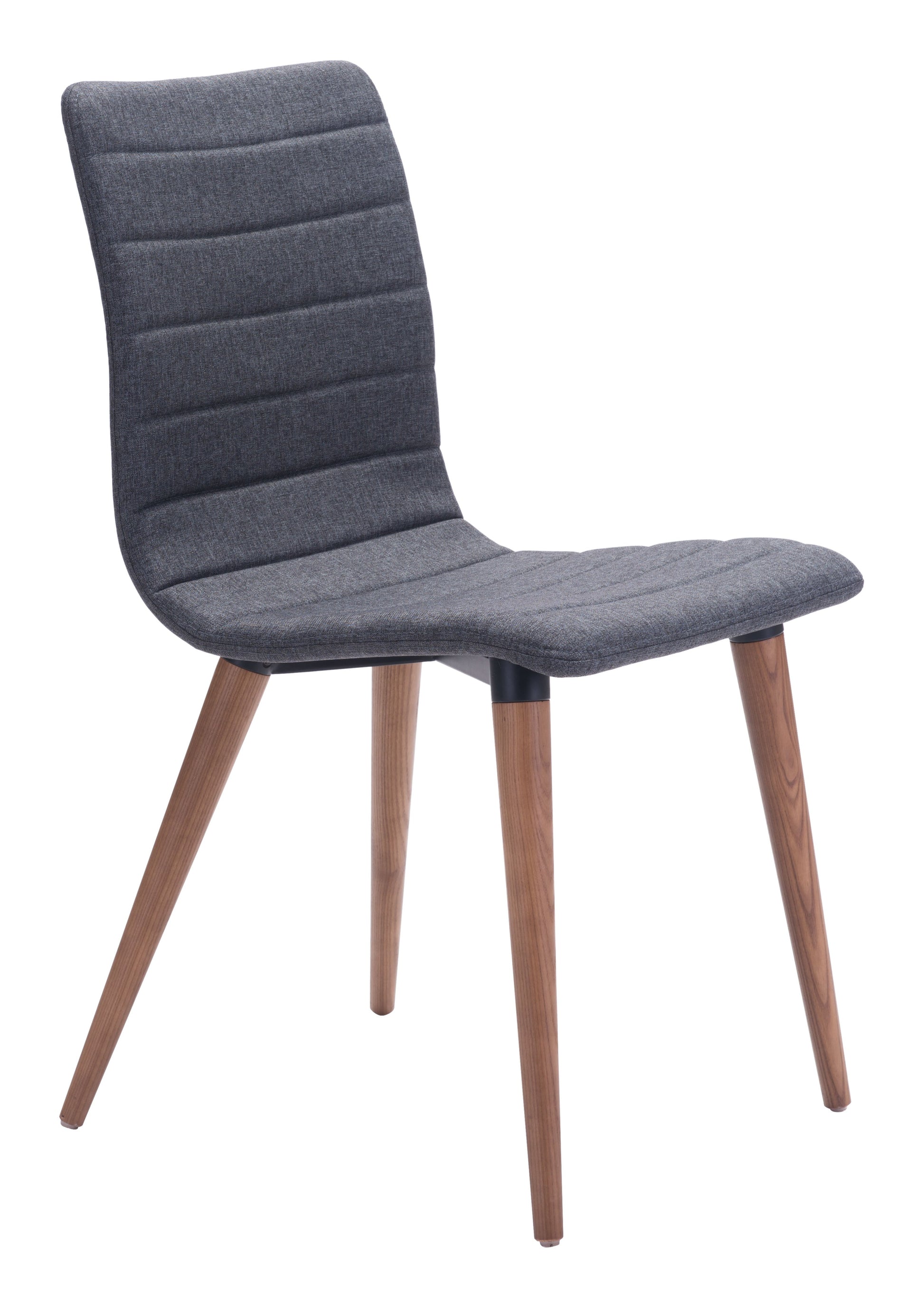 Mid-Century Modern perfection as the Jericho chair features poly-linen upholstered seam detail to slim seat/back design and is finished with sturdy all wood legs in warm walnut finish. Color options are grey or purple poly-linen fabric.