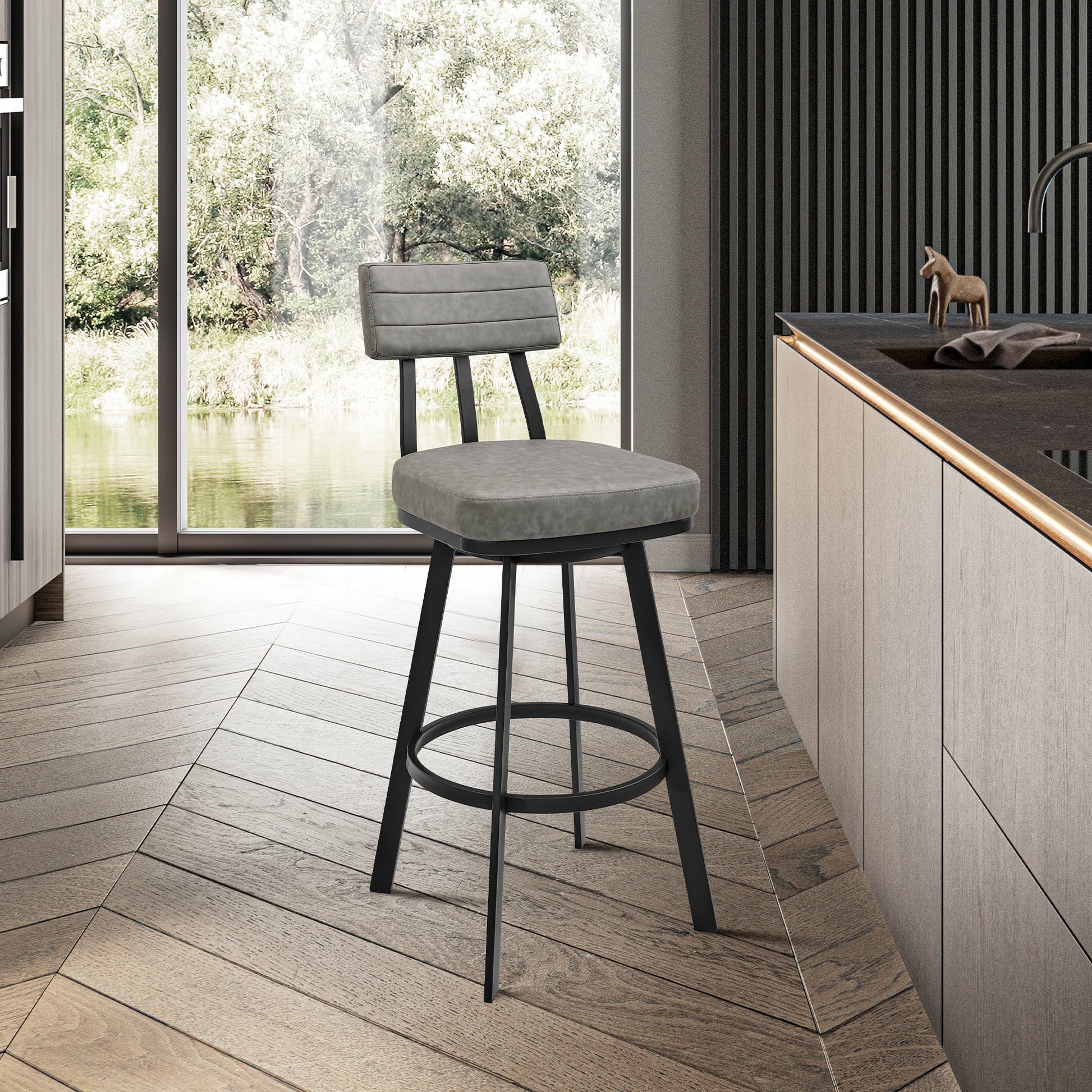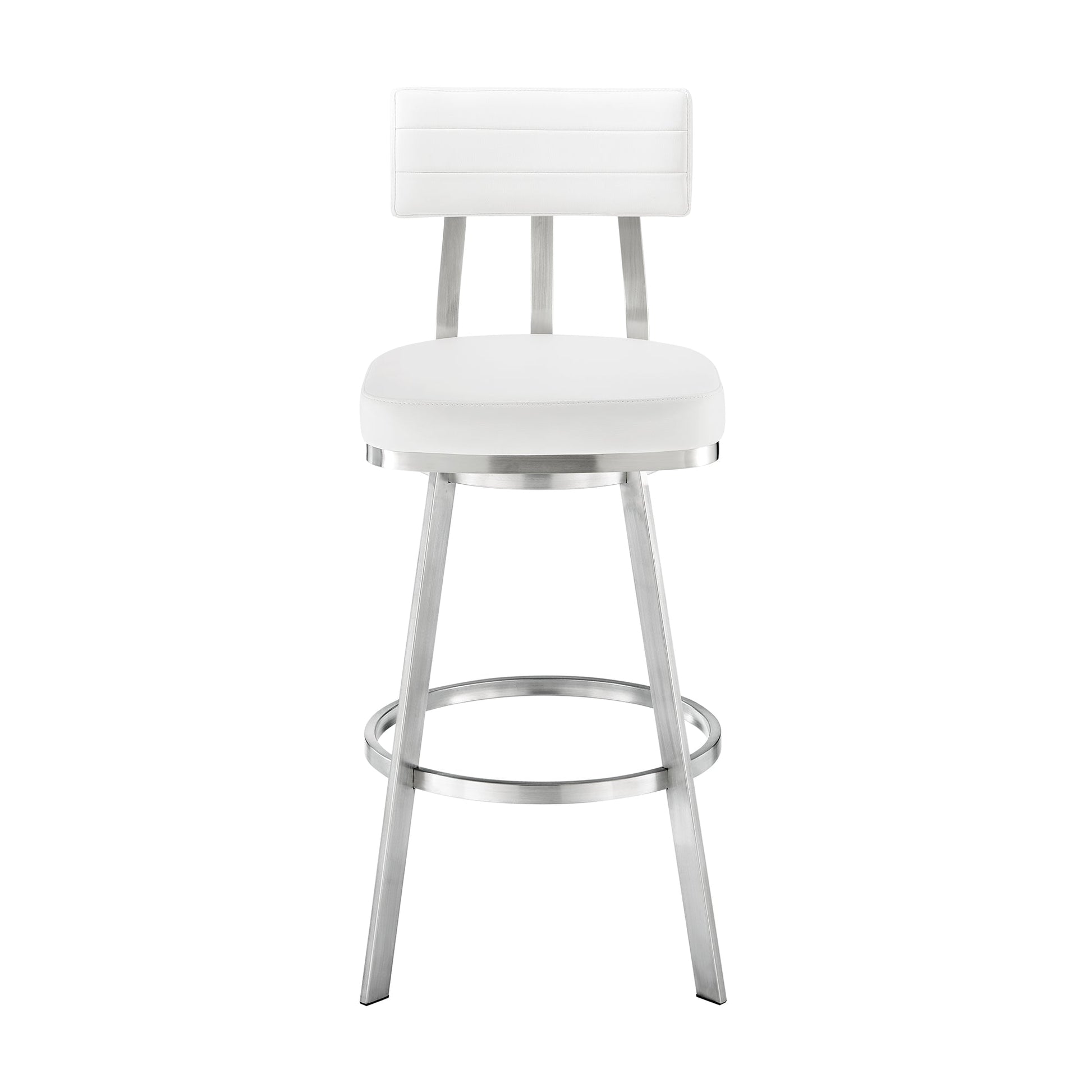 Each stool is upholstered in high-quality faux leather, which is not only resistant to cracking and fading but also boasts stain and UV resistance, making it a practical choice for busy households. The standout feature of these stools is the full 360-degree swivel function, providing maximum mobility and allowing you to change directions effortlessly. This smooth-glide swivel mechanism ensures that these stools will quickly become your favorite seating option in your home.