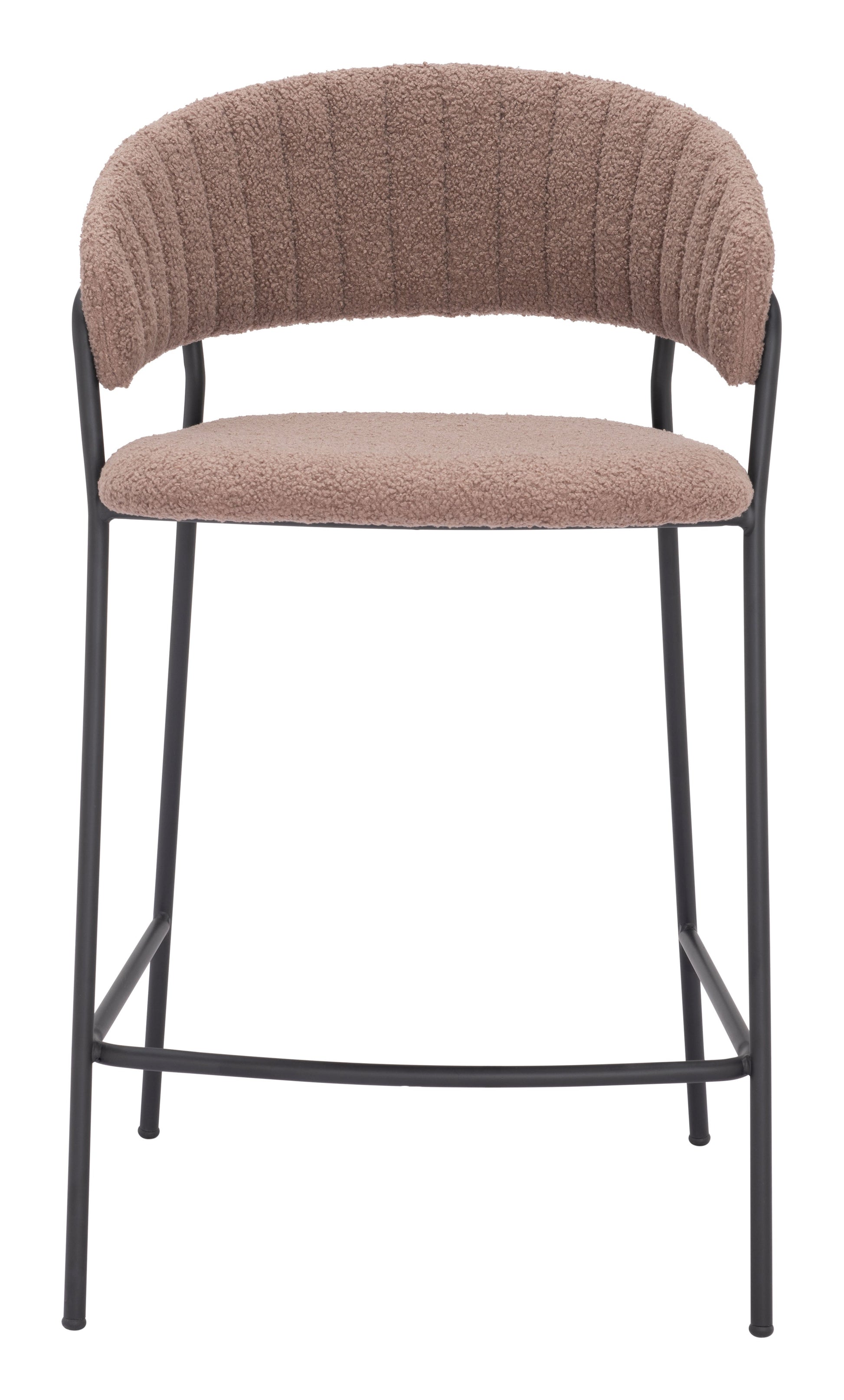 This counter stool has a nice, wrapped seat and back with a sturdy frame that combines mid-century modern with glam and décor elements and works well in space, residential, or hospitality.