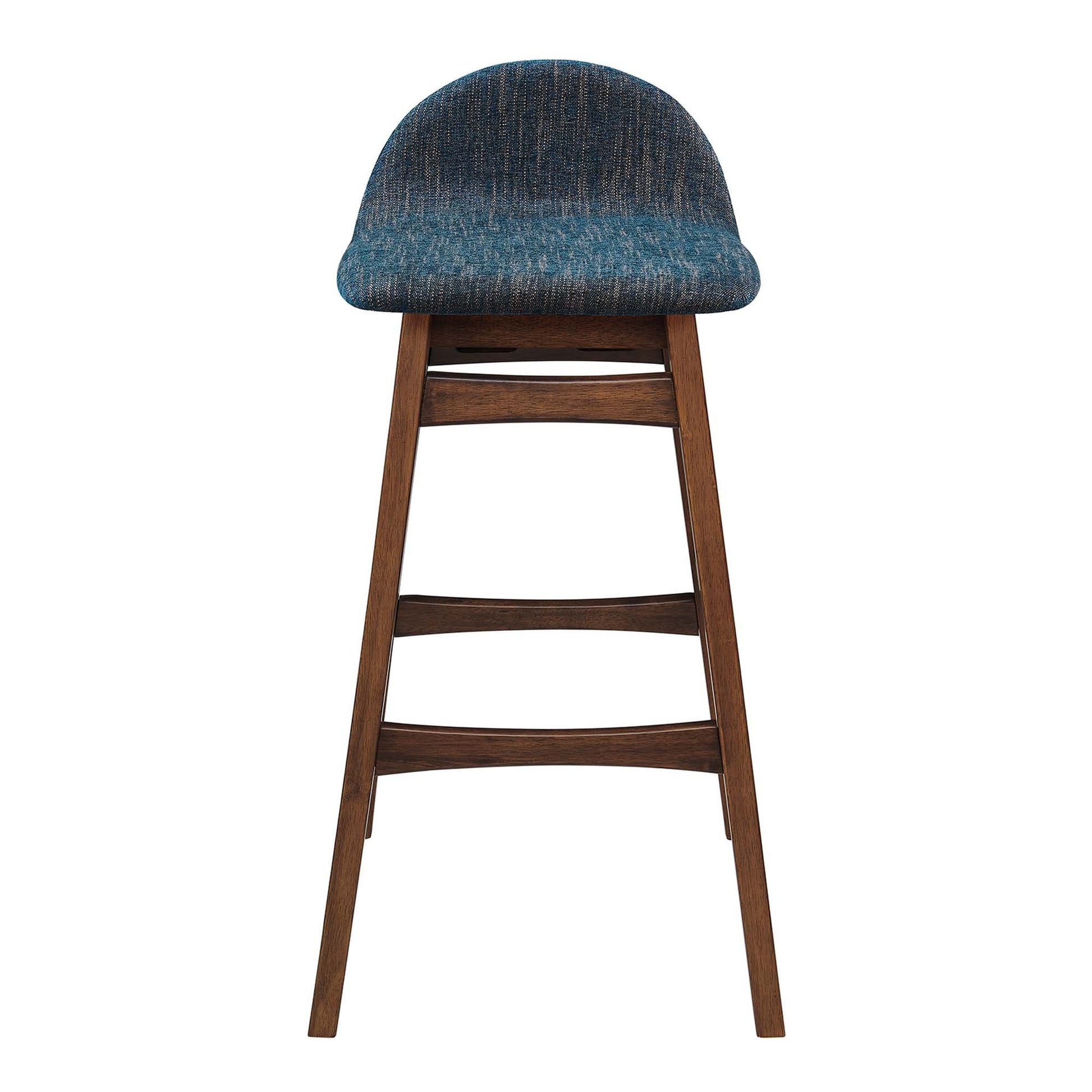 Invite lighthearted banter and deep conversations as you perch on the Juno Bar Stool Set of Two. This set of bar stools boasts splayed rubberwood legs and durable plywood seats, upholstered in woven heathered fabric. The unique arched contour of the low backrest, paired with integrated footrests and side supports, ensures optimal comfort for lasting sit-downs. With a mix of vintage-modern style and mid-century appeal, this pair of stools is multifaceted, serving as pub chairs, dive bar seating, or unique dining accents. Ideal for kitchens, bar areas, dining counters, and entertainment spaces, the Juno Bar Stool Set effortlessly complements any decor. Assembly required. Weight Capacity: 220 lbs. Overall Product Dimensions: 21"L x 18.5"W x 36.5"H