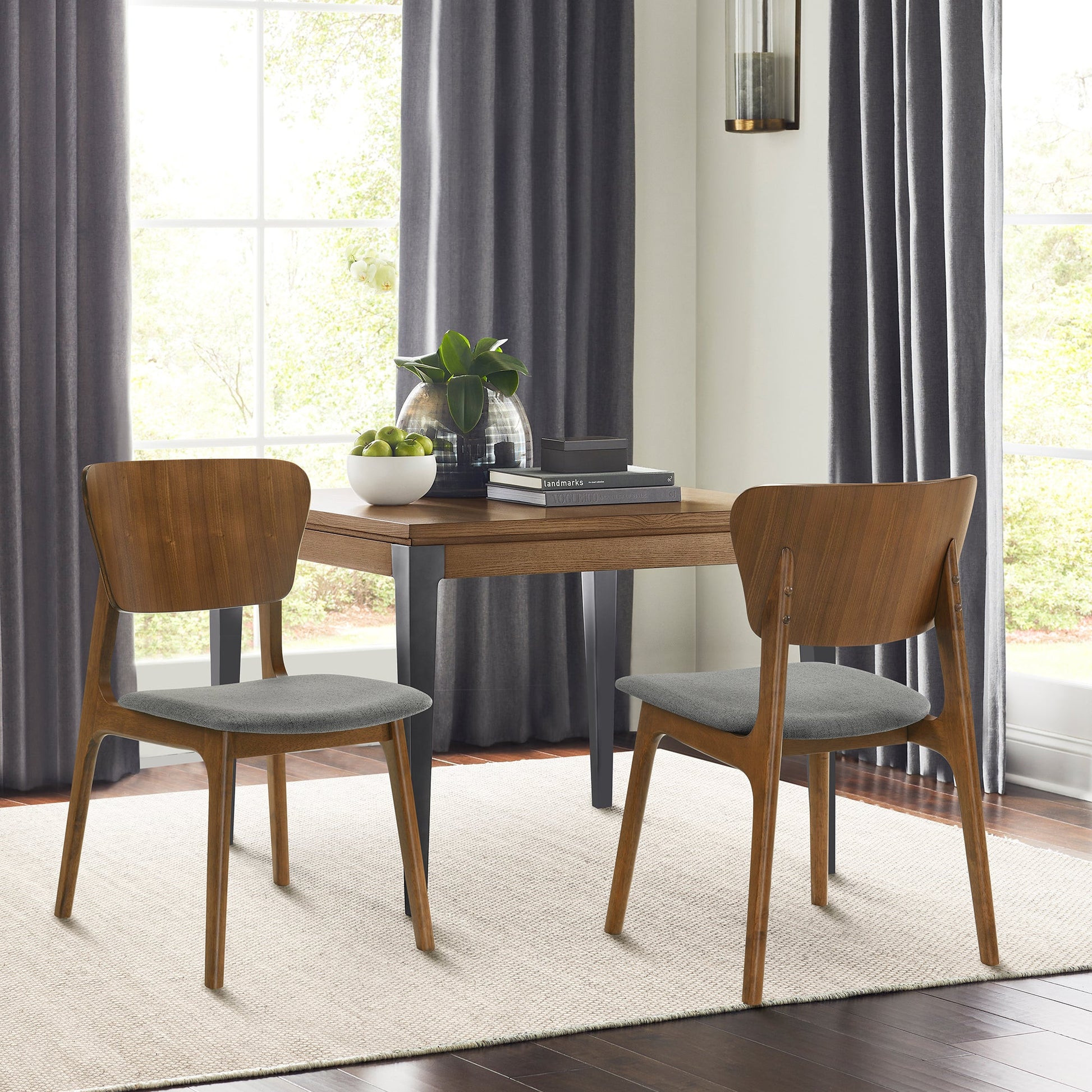 Kalia Wood Dining Chair in Walnut Finish with Charcoal Fabric - Set of 2