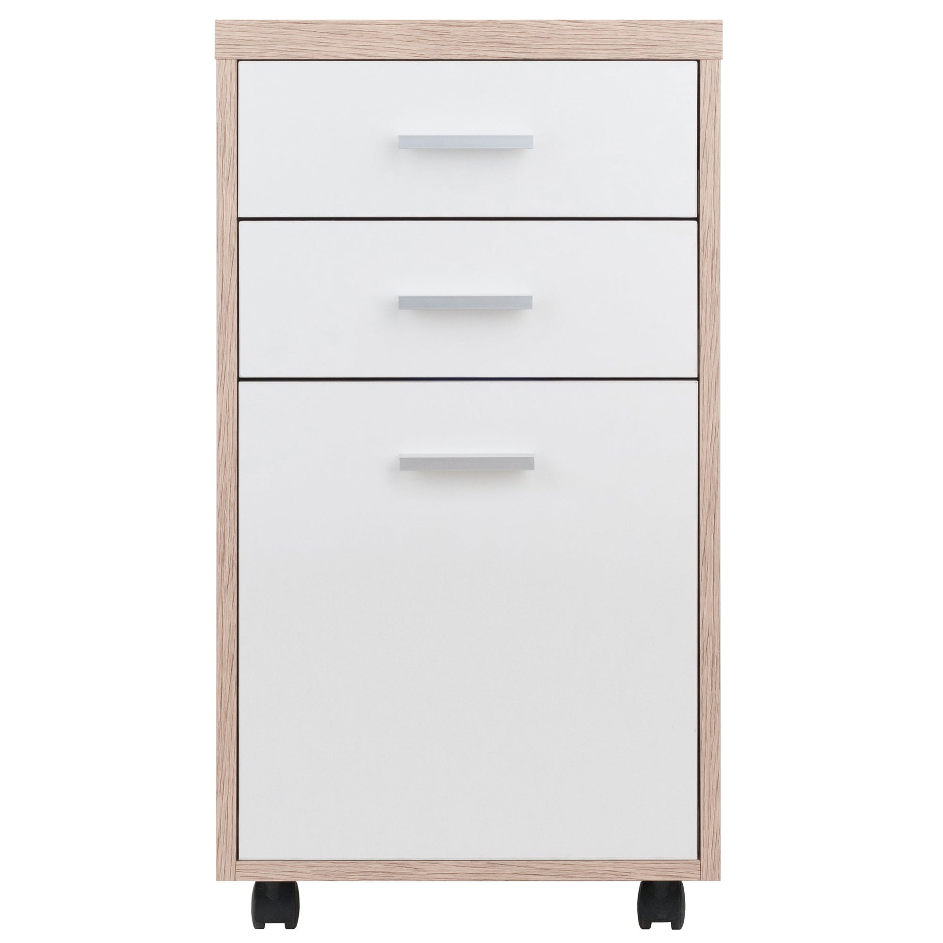 Customize your home office or professional workplace with the Kenner Storage Mobile Cabinets. This Winsome Wood Kenner Home Office File Cabinet is practical and functional on its own or can be combined with the Modular Desk Top along with any of the other Kenner Mobile Cabinets (each sold separately). The file cabinet is ideal for a home office, artist's studio, or anywhere you need storage with a bright, contemporary look. Keep letter-sized files in the bottom drawer and smaller office supplies in the top two drawers. The unit moves easily on sturdy casters, two of which lock. And the styling of the cabinet is as handsome as it is versatile. The frame is made of durable composite wood in a finish that has all the appearance of natural reclaimed wood. The drawer facings are finished in linen white with modern matte-silver plastic drawer pulls. Conveniently packed and shipped in 1 box, that includes the hardware necessary for assembling. Replacement part request can be submitted directly to the manufacturer within 60 days from date of purchase.