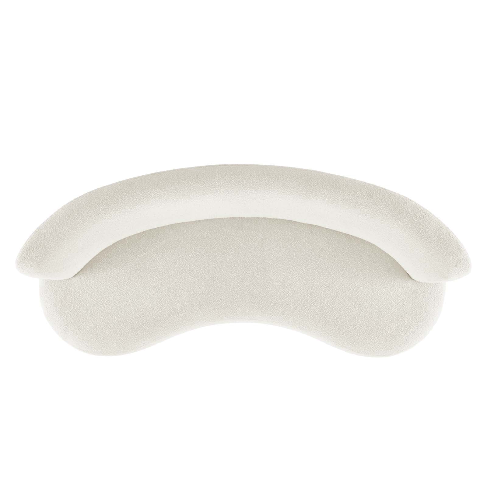 Invite on-trend style to your living space with the organic curves and nubby texture of the Kindred Boucle Upholstered Sofa. Covered in a beautiful boucle fabric made with looped yarns, this couch brings appreciated interest to a living room, office, bedroom, or lounge area. Dense foam padding and a webbed support system create a premium seating experience perfect for relaxing or enteraining. Resting on a brushed gold stainless steel base, this boucle sofa stuns in the modern home or apartment. Weight Capacity: 992 lbs.