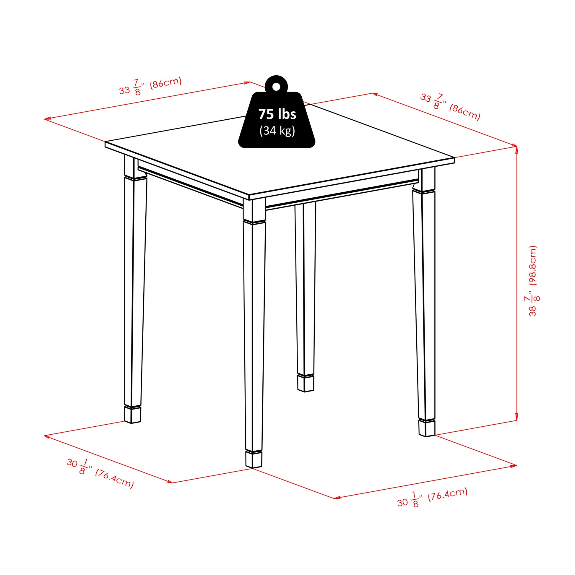 3pc Set includes Kingsgate High Table features grooved detailing on four legs. Constructed from Solid wood in Antique Walnut Finish. Saddle Seat Stool with Cushioned in Black Faux Leather with solid wood legs complete the set. Perfect for any kitchen.Dimensions : 33.86 in. Wide 33.86 in. Deep 38.9 in. High