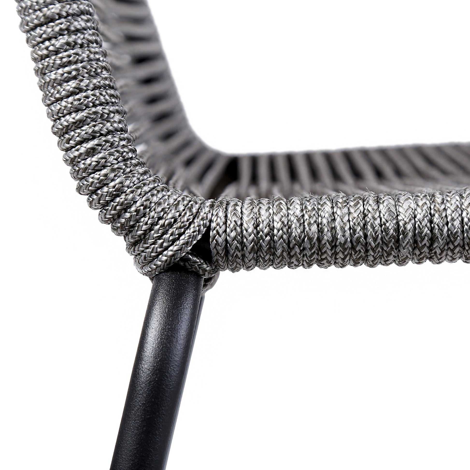 Enjoy a modern outdoor space with the Koala and Koala/Shasta 5 Piece Dining Set in Eucalyptus and Metal with Rope. This 5-piece dining set includes our Koala rectangle 71-inch patio dining table and 4 of our Koala/Shasta rope and steel stackable dining chairs. The mix of materials create depth and texture that mesh well with the natural outdoor surroundings. Modern and inviting, our patio dining table combines the warmth of wood with the hardiness of metal. The clean-lined and minimal profile of the table can effortlessly blend and compliment any outdoor space. One of the best reasons to choose Eucalyptus wood for your outdoor furniture or four-seasons porch is that it is exceptionally resistant to decay and rot. It naturally resists the influence of moisture because of the high oil content it naturally contains. That means it can get damp without you worrying about whether damage will occur. It can withstand several different outdoor elements while lasting for many years if it receives proper care. The Koala’s trestle base allows for maximum seating space as it makes the table virtually legless and allows for the full surface of the table to be used and no corner legs that would limit dining chair space. The Koala rectangle outdoor table features a convenient umbrella hole to keep you out of the sun. The fishbone weave of the Koala/Shasta dining chairs creates a comfortable back and seat while also making it easy for the outdoor elements to pass through. The Koala and Koala/Shasta dining set is available in your choice of Light Eucalyptus wood with your choice of gray, black, brick red, wasabi, or tangerine rope, or a Dark Eucalyptus wood with black rope.