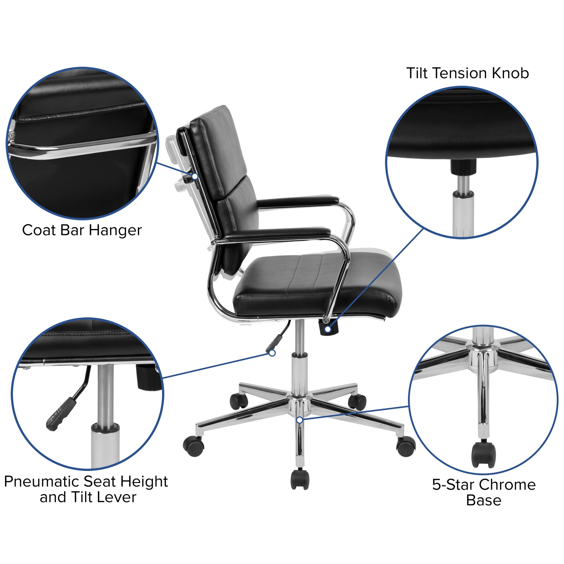 Crafted from high-quality LeatherSoft material, these chairs are not only visually appealing but also durable and easy to maintain. The plush cushioning provides exceptional comfort, allowing you to focus on your tasks without distraction. Choose from high-back or mid-back designs, with armless options available for those who prefer a more minimalist look.