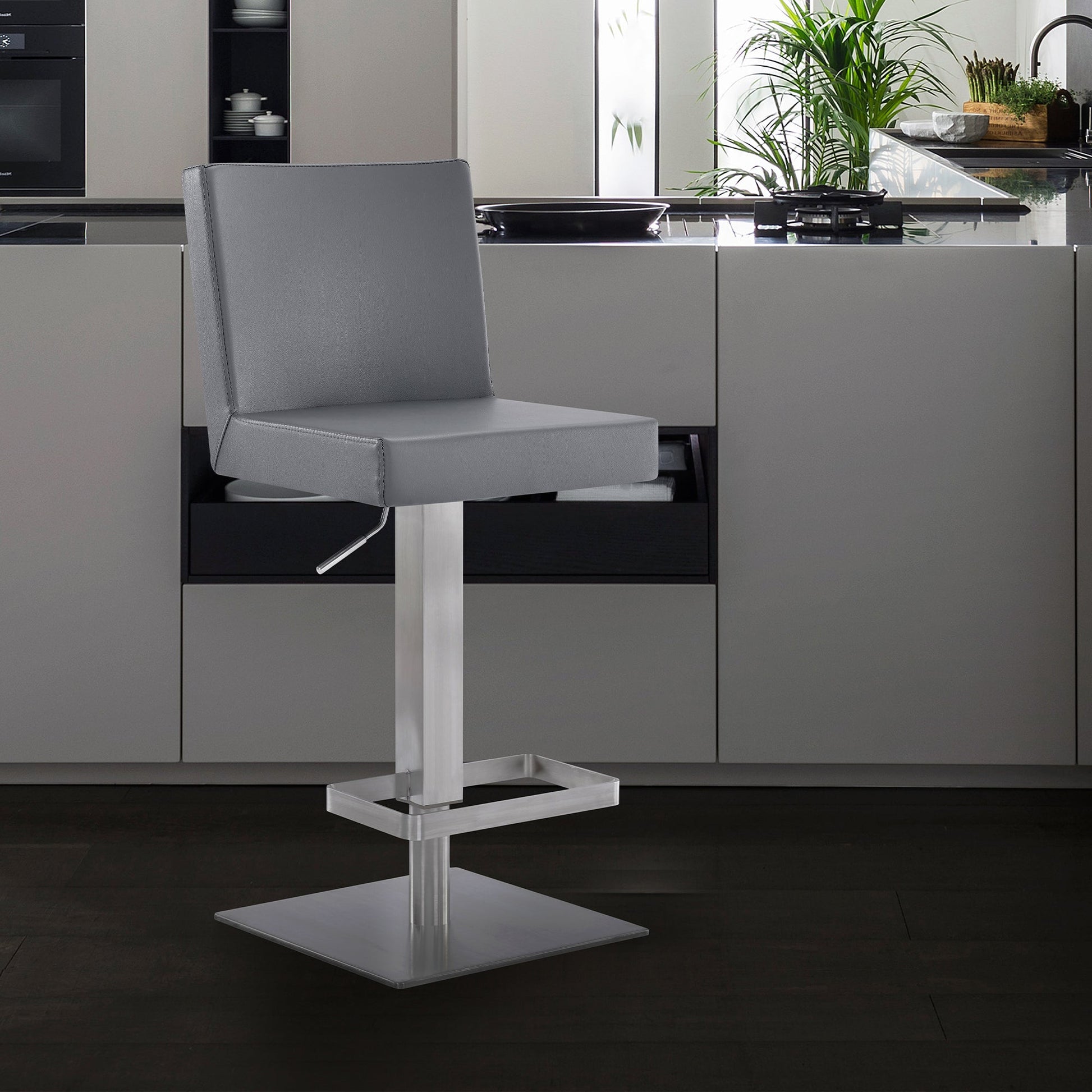 Elevate your home decor with the versatile and stylish adjustable height swivel bar stool from Armen Living. Designed to seamlessly blend with any interior style, this bar stool features a unique square column base that not only enhances its aesthetic appeal but also provides a stable and secure seating experience. Wrapped in luxurious faux leather, the high-density foam cushioned seat ensures optimal comfort, making it perfect for long gatherings or casual dining.