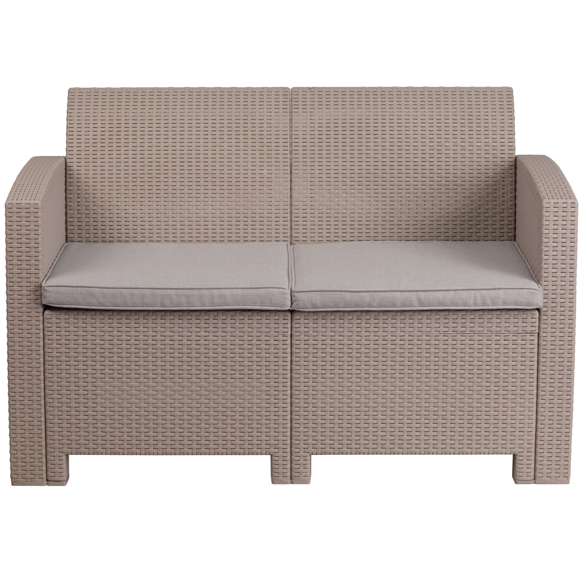 Seneca Light Gray Faux Rattan Loveseat with All-Weather Seneca Light Gray Cushions Dimensions: 47"W x 27"D x 30"H