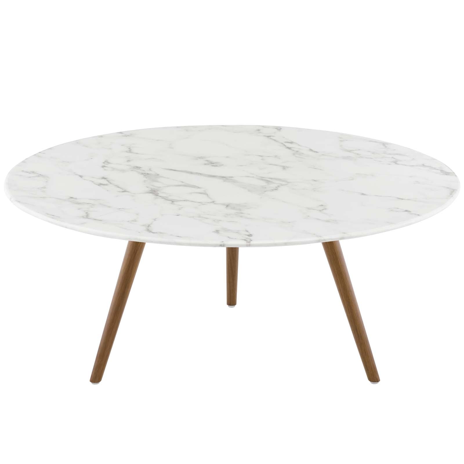 Lippa 36" Round Artificial Marble Coffee Table with Tripod Base Walnut White EEI-3661-WAL-WHI
