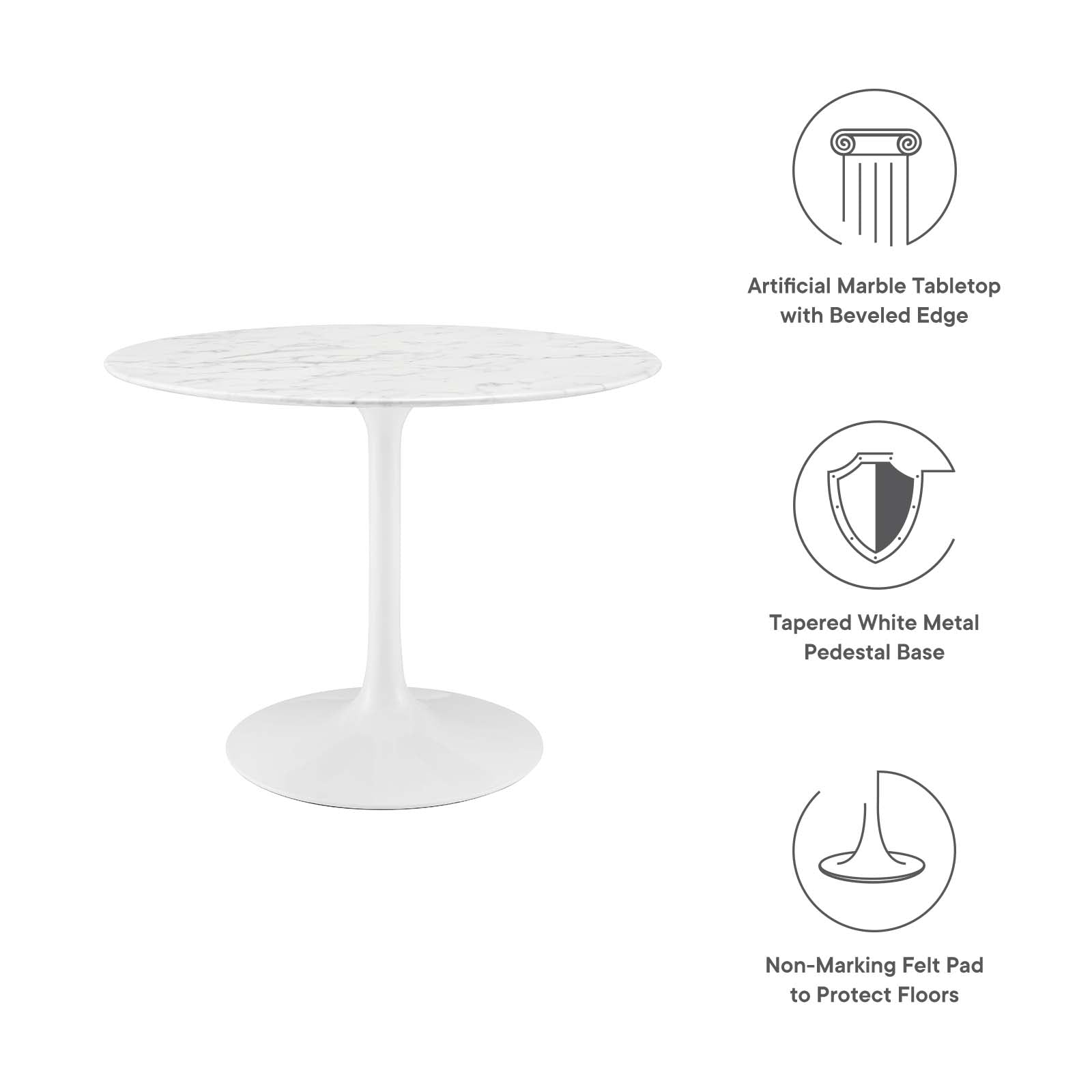 Let modern inspiration flow while gathered around this stunning round dining table, perfect for entertaining family and friends or enjoying everyday meals. This versatile pedestal table comfortably seats two to four, making it an ideal choice for intimate gatherings or casual dining. The round tabletop is crafted from high-quality materials, featuring a sleek high gloss or artificial marble finish with a beveled edge, exuding a contemporary yet timeless design.
