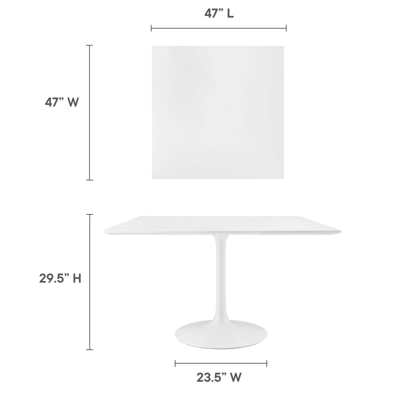 Let modern inspiration flow while gathered around this stunning square dining table, perfect for entertaining family and friends or enjoying everyday meals. Designed to comfortably seat four, this pedestal table features a square tabletop crafted from durable MDF, showcasing a high gloss finish and a beveled edge that exudes contemporary elegance while retaining a timeless appeal. Embodying an iconic mid-century silhouette, the table rests on a sleek tapered metal pedestal base that is available in a chip-resistant finish, ensuring lasting beauty and functionality.