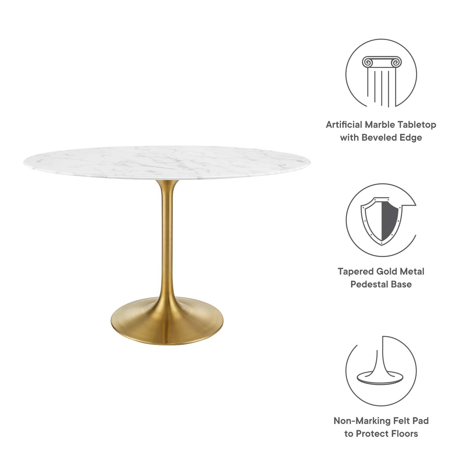 Lippa 48" Dining Table - Artificial Marble, Solid Wood & Metal Options by Modway