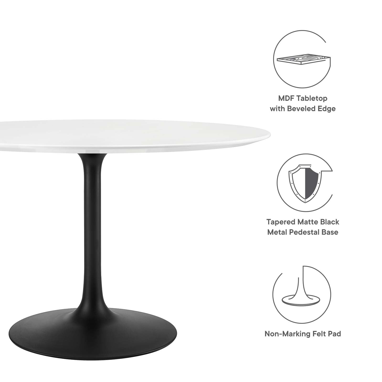 Embodying an iconic mid-century silhouette, this dining table rests on a stylish tapered pedestal base available in robust solid wood or minimalist metal. This unique base not only provides exceptional support but also adds a chic aesthetic, seamlessly blending with various interior styles from farmhouse to modern-industrial. The design is complemented by non-marking felt pads to protect your flooring, ensuring practicality alongside style.