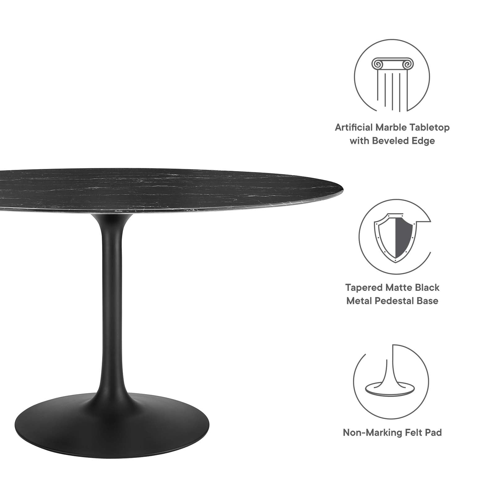 Let modern inspiration flow while gathered around this exquisite oval artificial marble dining table. Perfect for entertaining family and friends or for everyday dining, this elegant pedestal table comfortably seats four. Its oval tabletop, crafted with high-quality artificial marble and featuring a beveled edge, embodies a contemporary yet timeless design that enhances any dining experience.