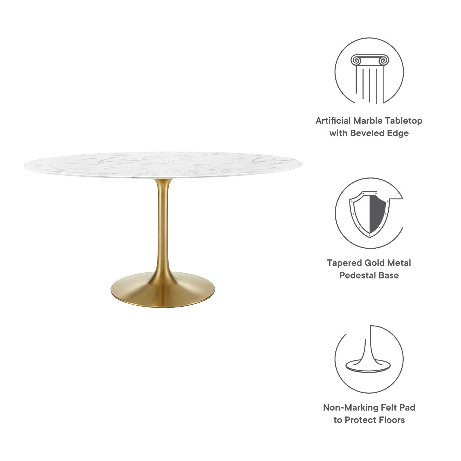 Lippa 60" Oval Dining Table with Gold Base and Artificial Marble or Wood Options