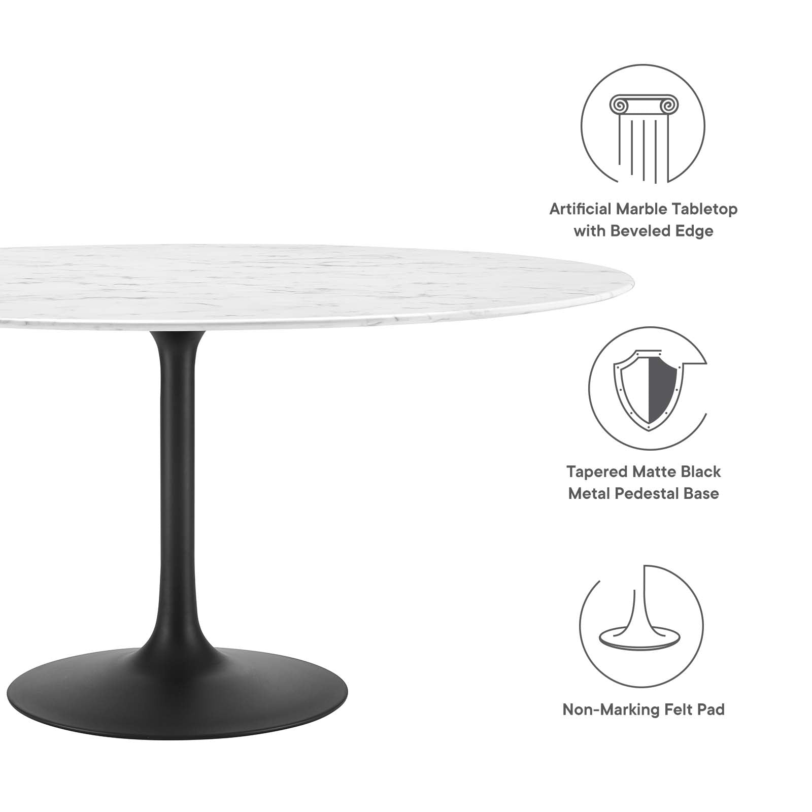 Let modern inspiration flow while gathered around this stunning round dining table, perfect for entertaining family and friends or enjoying everyday meals. Designed to comfortably seat six, this pedestal table features a beautifully crafted round tabletop made from high-quality materials, showcasing a sleek beveled edge for a contemporary yet timeless aesthetic. Embodying an iconic mid-century silhouette, the table floats on a stylish tapered metal pedestal base, which is finished with a durable, chip-resistant coating to ensure longevity and resilience.