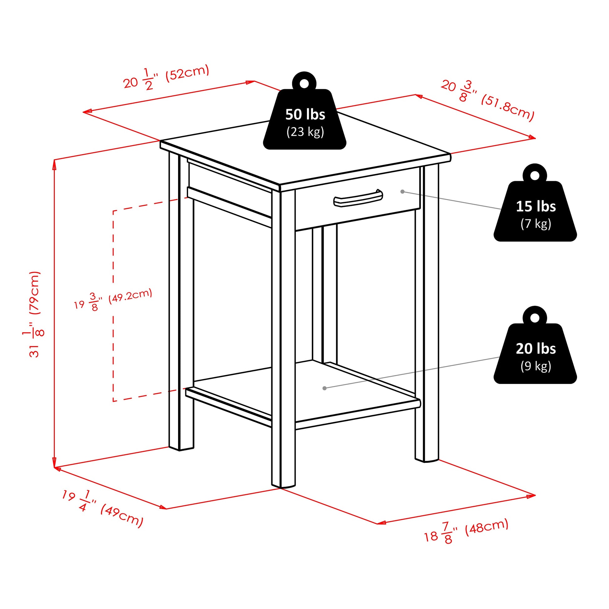 Combination of solid and composite wood printer stand from the coordinated Liso line of home office furniture. The stand is 20.5"L x 20.5"Wx31.1"H - more than enough space to accommodate all in one printers, fax and copy machines. As with the other products in the Liso line, the stand is finished in matte Espresso color and ships ready to assemble with hardware and tools.Dimensions : 20.47 in. Wide 20.47 in. Deep 31.1 in. High