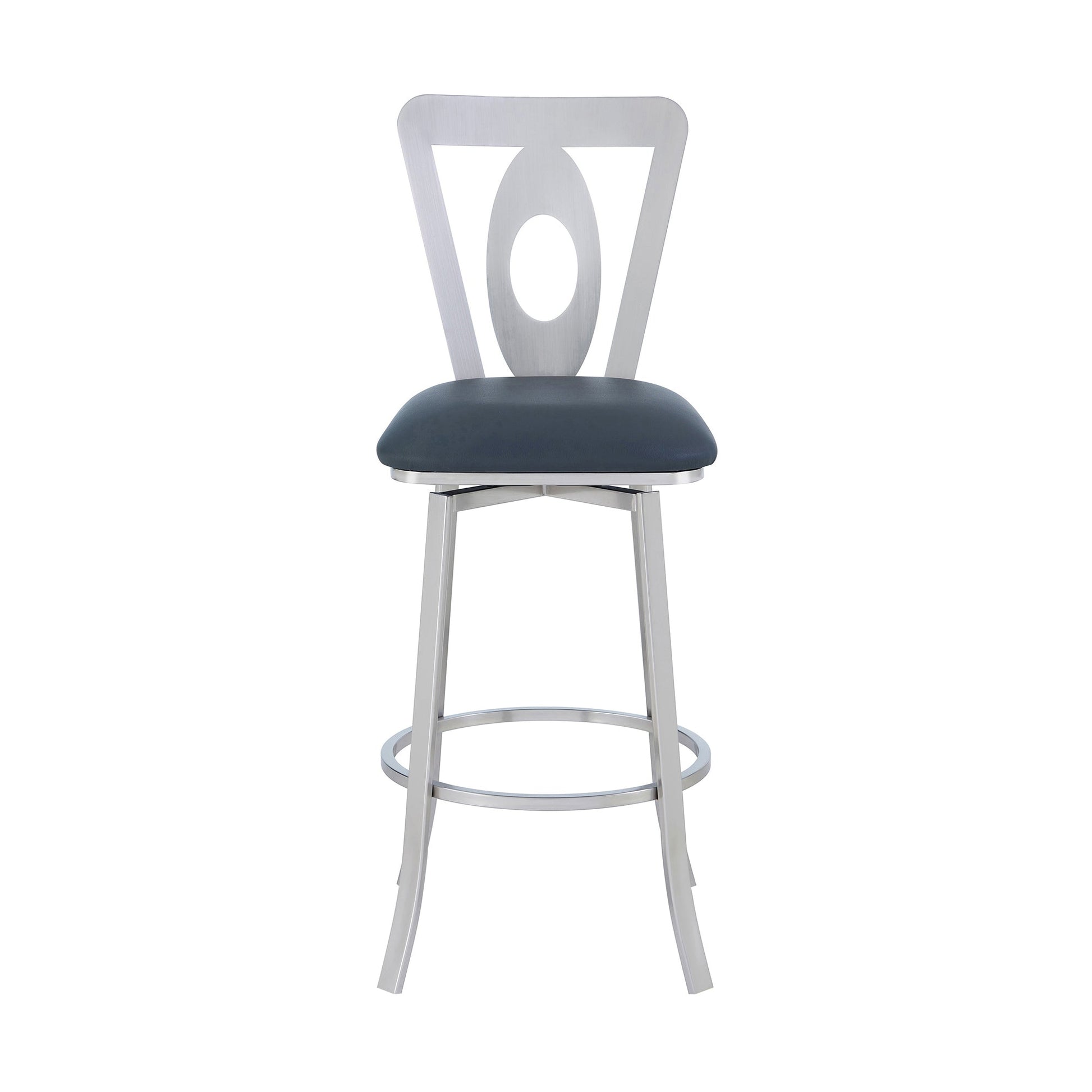 Lola Contemporary 30" Bar Height Barstool in Brushed Stainless Steel and Faux Leather