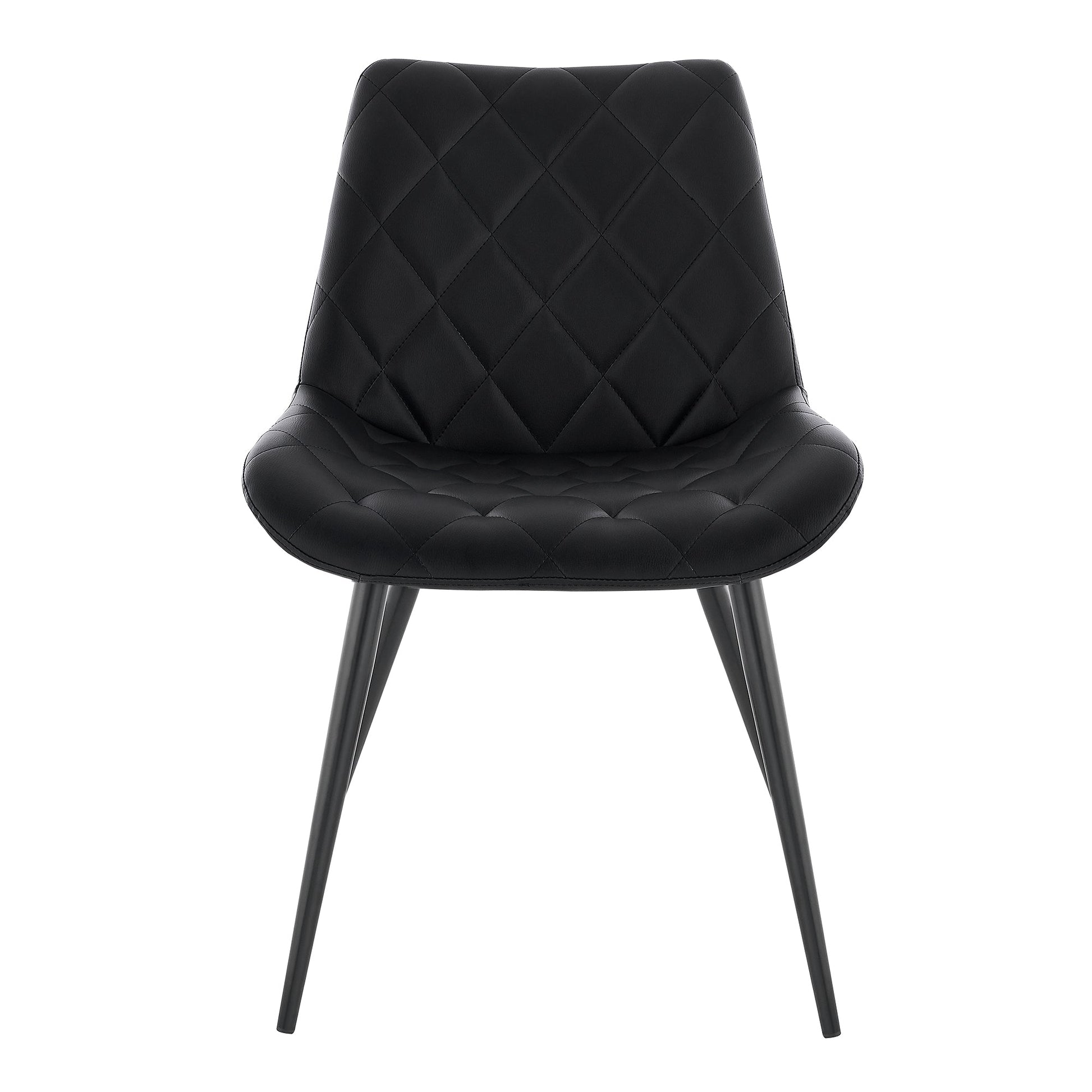 The Loralie Black Faux Leather and Black Metal Dining Room Chairs from Armen Living is a wonderful addition to bring into any home! The thick diamond stitch design adds refinement and an alluring appeal to this chair. The wide seat is beyond comfortable and the rounded ends on the seat keep you intact and secure. The metal frame is stable and strong - adding longevity to this piece and giving you extra years of enjoyment. The Loralie is available in your color choice of Gray or black faux leather. The Loralie dining chairs come as a set of 2 and can support up to 250lbs per seat.