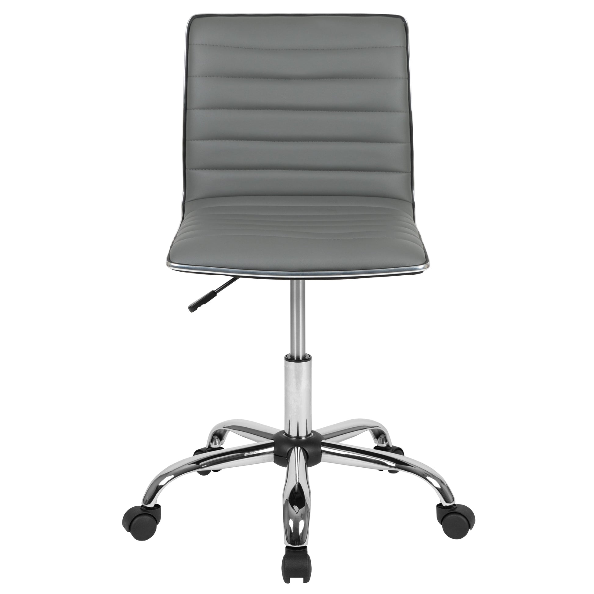 Introducing the ultimate solution for your workspace comfort and style: a versatile low back task chair designed for modern office environments. This armless swivel task office chair features a sleek ribbed design that adds a touch of sophistication to any setting. With a sturdy frame and base, this chair is crafted to provide both durability and elegance, making it an ideal choice for home offices, corporate spaces, or creative studios.