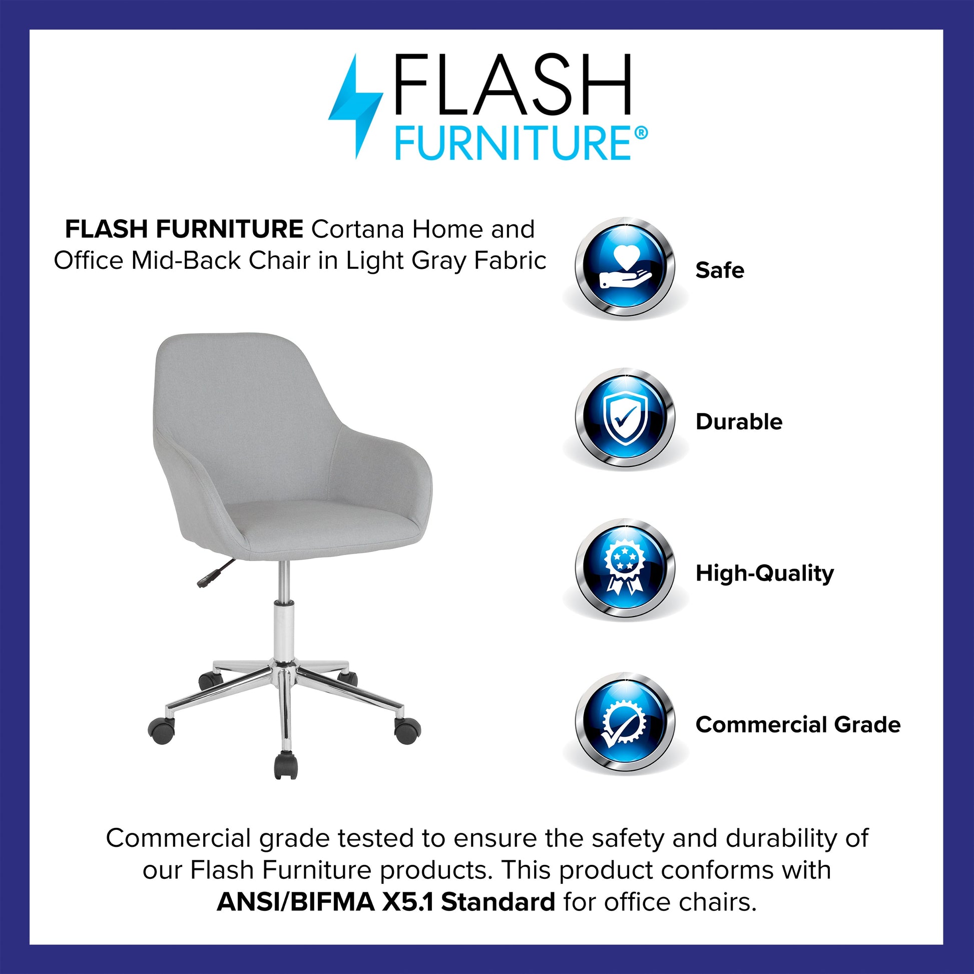 Cortana Home and Office Mid-Back Chair in Light Gray Fabric Dimensions: 25"W x 25"D x 33.5" - 38.5"H