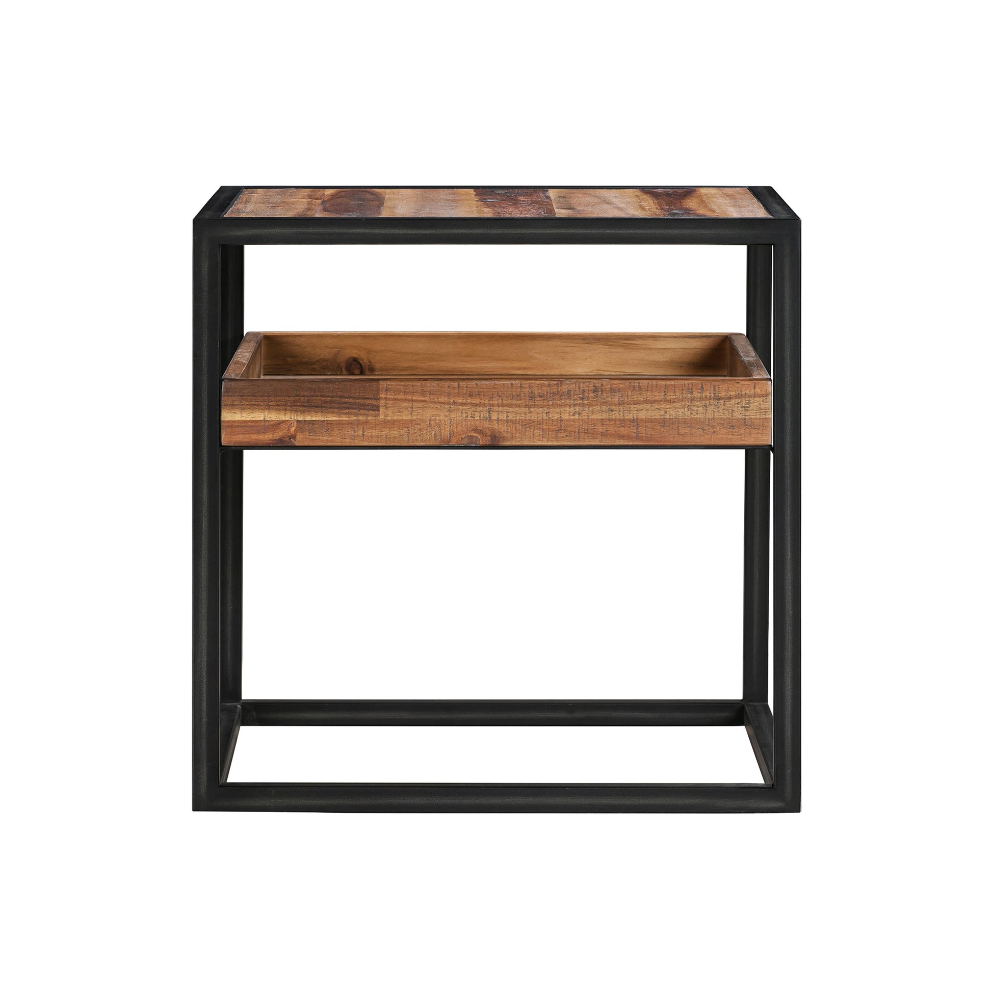 Ludgate Square End Table with Shelf in Acacia and Black Metal