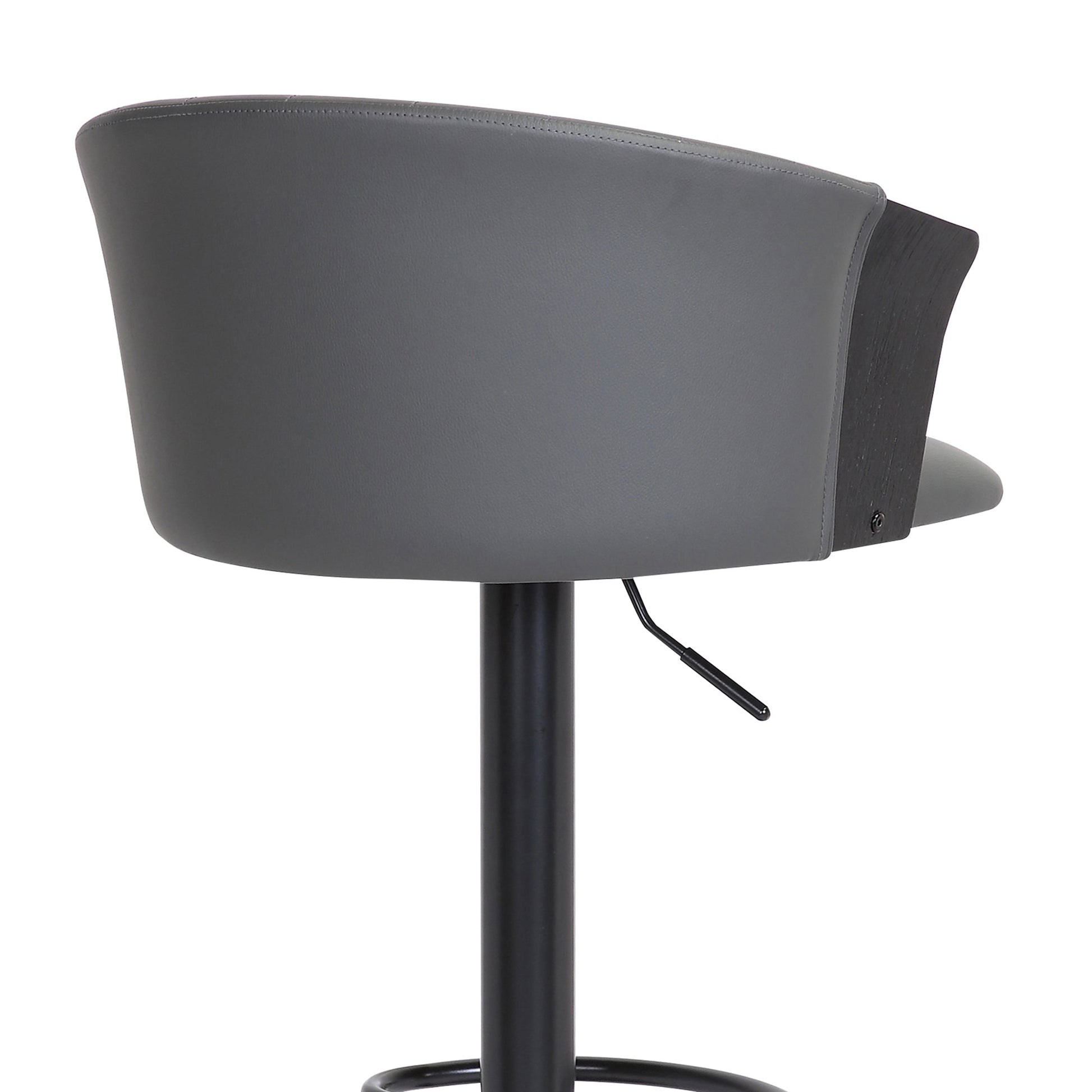 Lydia Adjustable Wood Bar Stool with Faux Leather and Black Metal