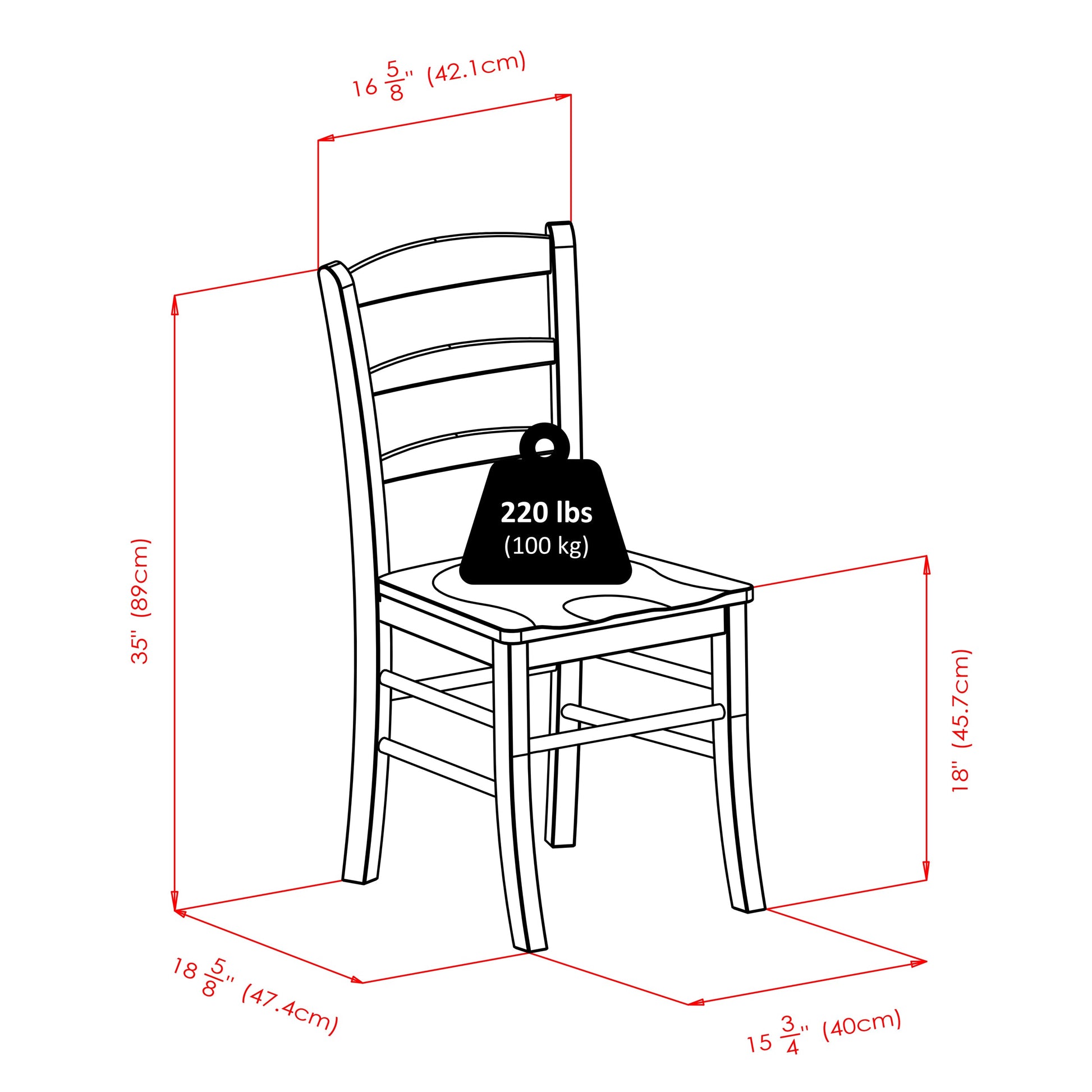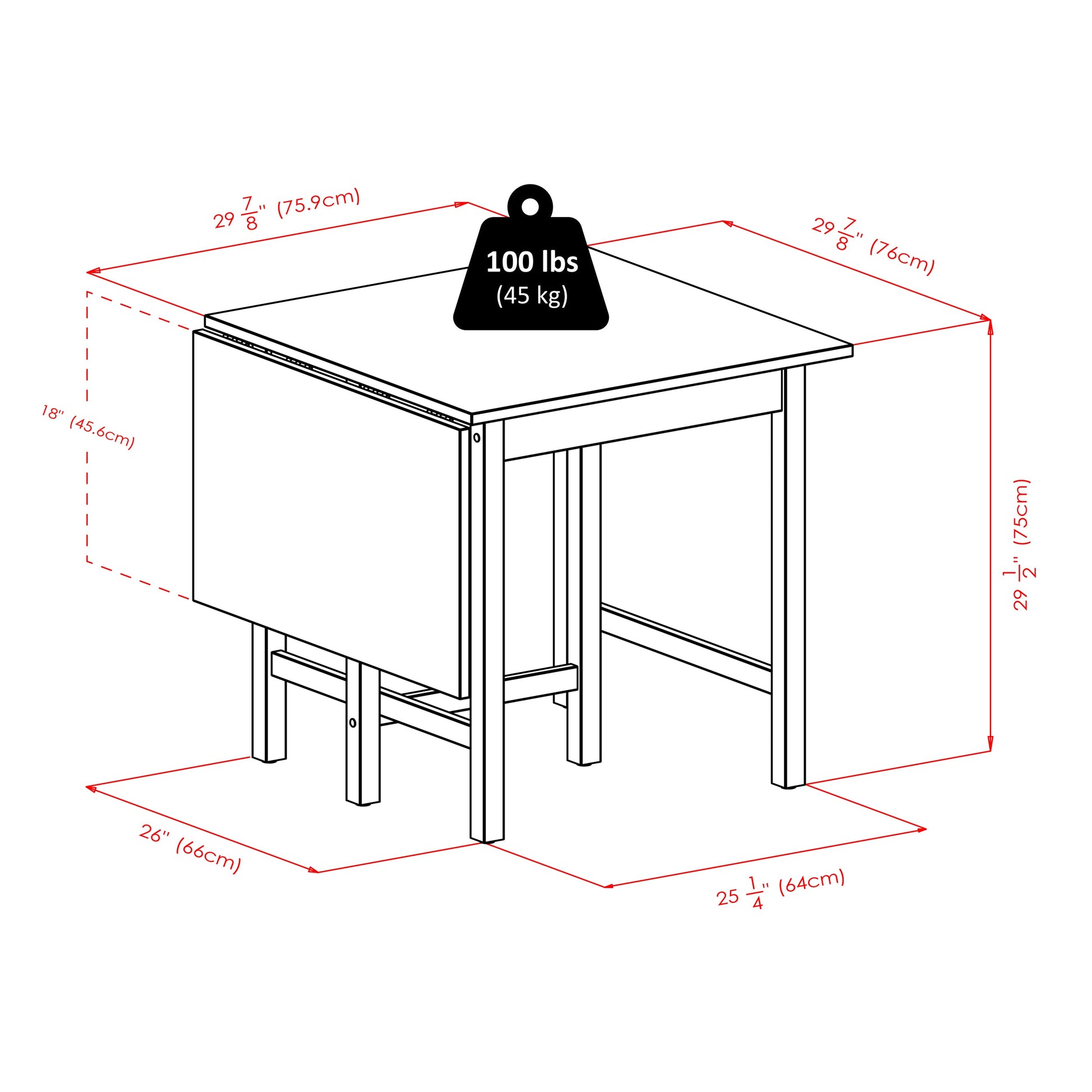 This set comes with Drop Leaf table and 2 Ladder Back Chairs. Lynden Drop Leaf Dining Table is functional and space saving perfect for kitchen or small area. Daily use table top surface is 29.92" square. For extra space, this table includes a Drop Leaf with surface area of 17.95'W x 29.92"D. Fully Expand table surface is 47.87"W x 29.92"D x 29.53"H. Slide out leg to prop up drop leaf. The set includes two ladder back chairs with overall size of 16.60"W x 20.50"D x 34.70"H. Seat Height is 18". Seat width is 16.60". Chair weight limit is 220 Lbs. Both Table and Chairs are constructed from solid wood in Antique Walnut Finish. Assembly Required.Dimensions : 47.87 in. Wide 29.92 in. Deep 29.53 in. High