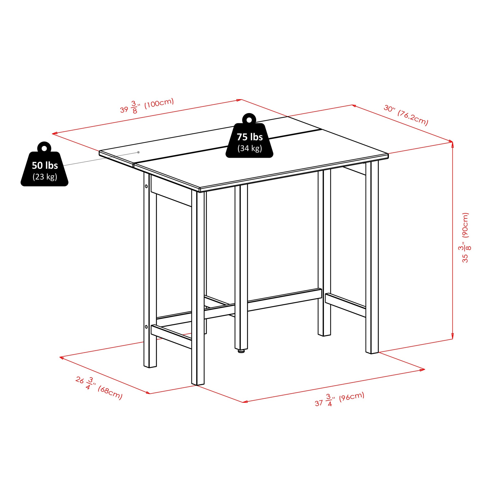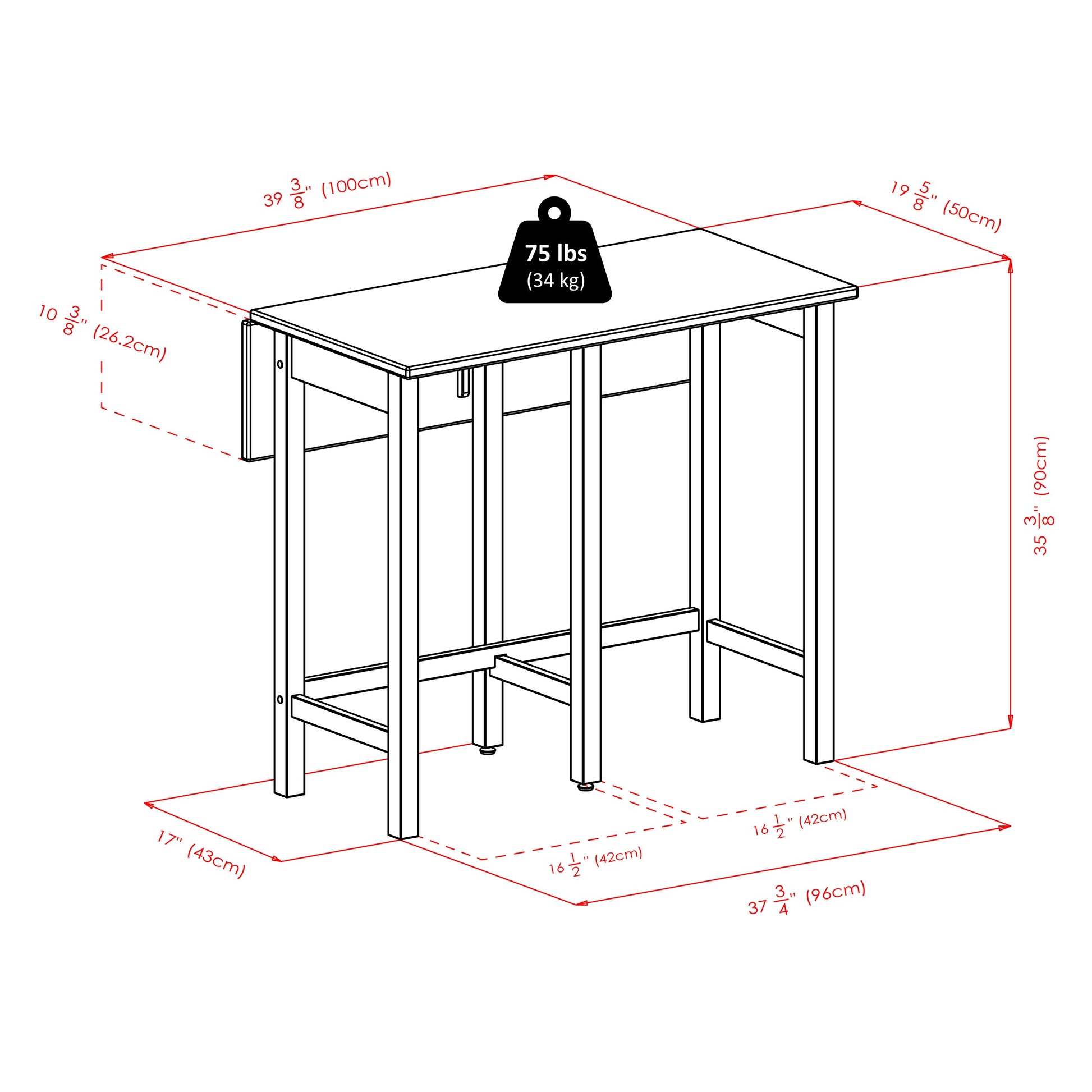 Add convenience and charm to your kitchen or breakfast nook with the Winsome Wood Lynnwood 3-Pc Dining set. A simple design yet an indispensable addition to any home. Offering exceptional versatility and making this an excellent space saving choice for a studio apartment or small spaces where a multipurpose table and seating is ideal. A drop leaf table supported by a pull-out leg, giving you more surface space when needed. Two classic stools that have a striking, ladder-back design but also offers comfort. Constructed of sturdy solid wood in a walnut finish that adds instant warmth and can be incorporated effortlessly into nearly any existing decor. This set ships in 2 boxes, with the hardware necessary for assembly included. Replacement parts can be requested directly to the manufacturer within 60 days from date of purchase.Dimensions : 39.37 in. Wide 30 in. Deep 35.43 in. High