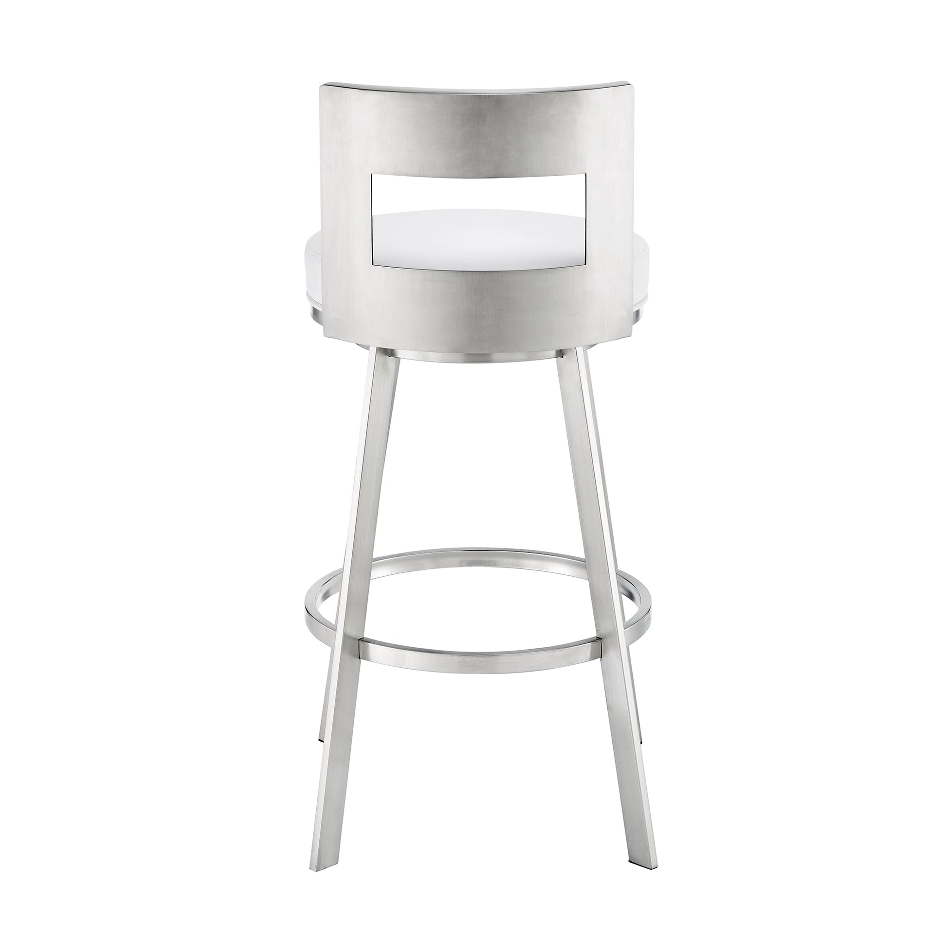 Transform your living space with the stylish and versatile swivel bar and counter stools from Armen Living. Designed for modern homes, these stools feature a sturdy metal or brushed stainless-steel base, ensuring durability and stability. Upholstered in high-quality faux leather, the seats are not only chic but also practical, as they resist cracking, fading, and staining, while being UV resistant for long-lasting beauty.