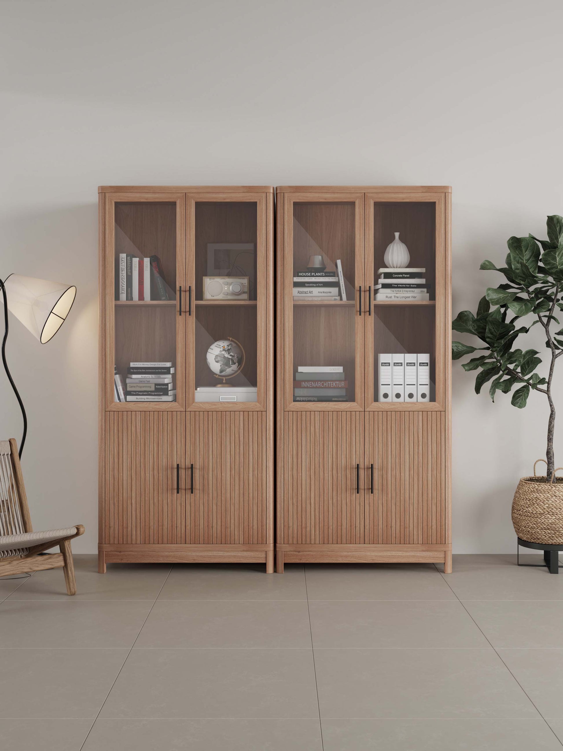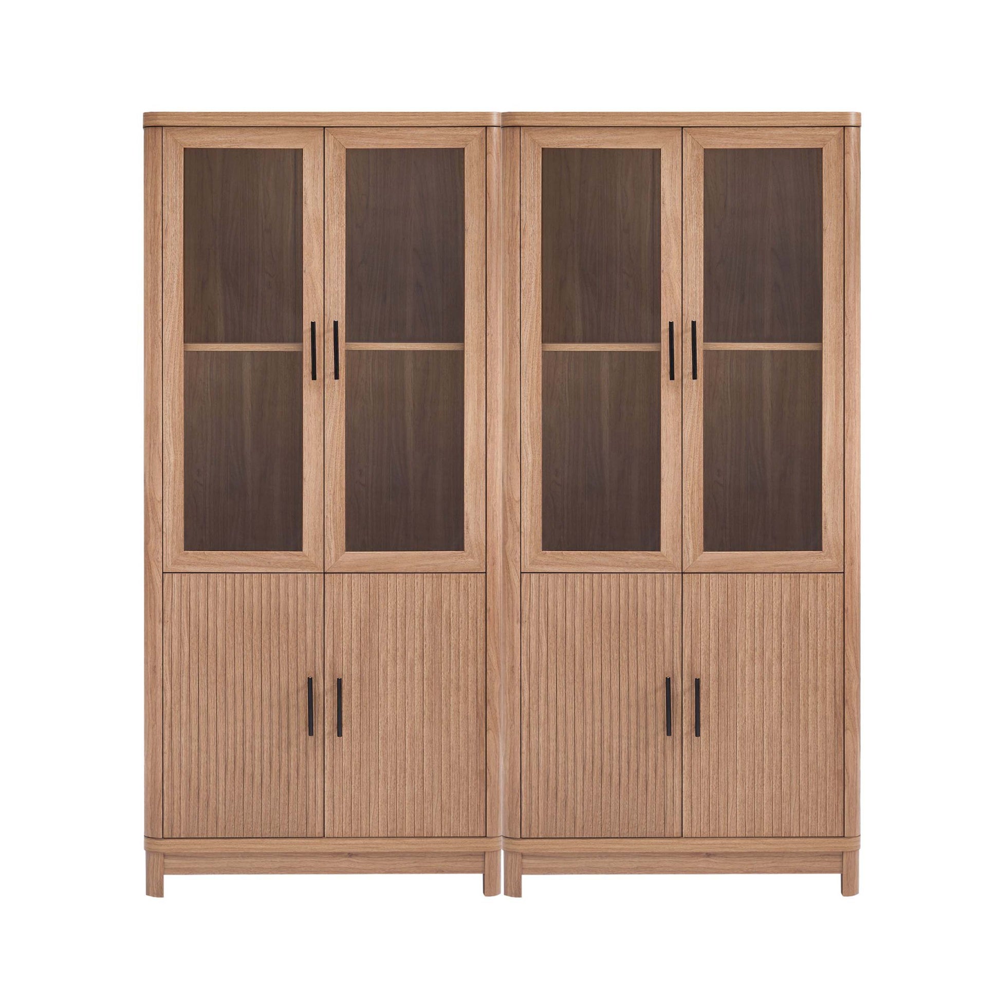 Manhattan Comfort 2 Piece- Mid Century- Modern Jodie Bookcase with Adjustable Shelves and Tempered Glass Doors in Maple 2-BC001-MP