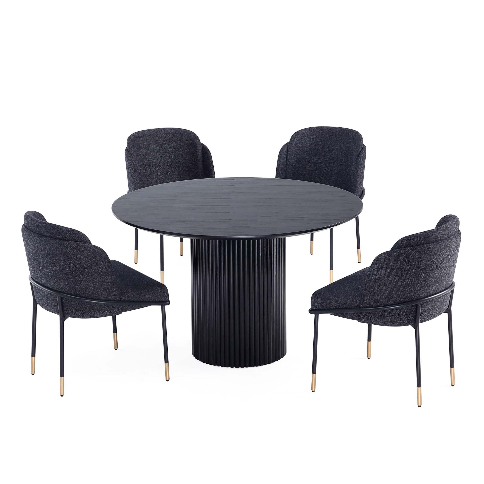 Manhattan Comfort 5-Piece Hathaway Modern 47.24 Solid Wood Round Dining Set in Black with 4 Flor Velvet Upholstered Dining Chairs in Black 4-DT03DC052-BK