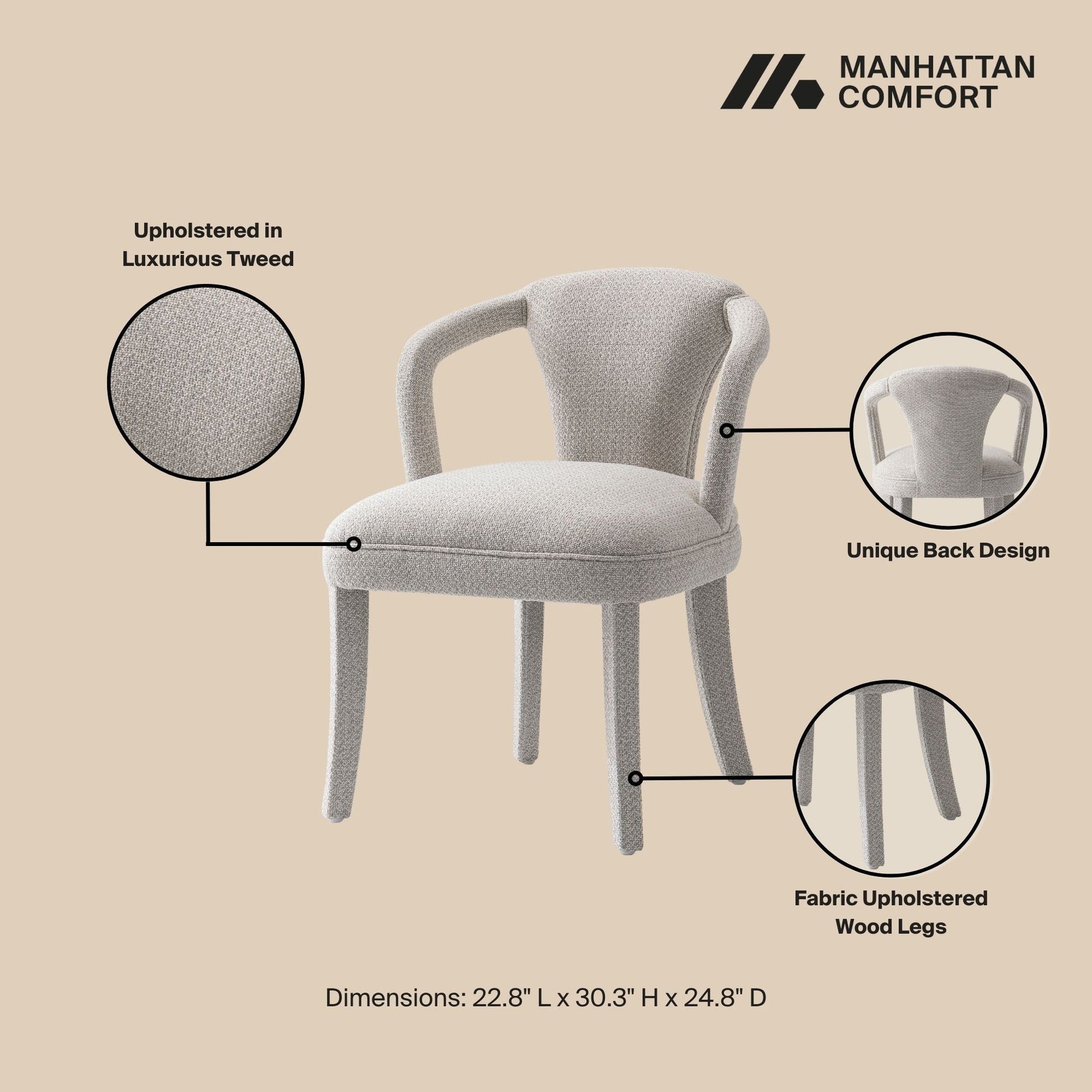 Manhattan Comfort 5-Piece Hathaway Modern 47.24 Solid Wood Round Dining Set in Natural with 4 Palmer Tweed Upholstered Dining Chairs in Silver Lining 4-DT03DC088AR-NASL